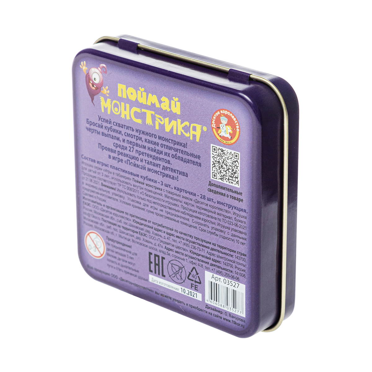 Игра хранится в компактной жестяной коробочке (9 х 9 см).