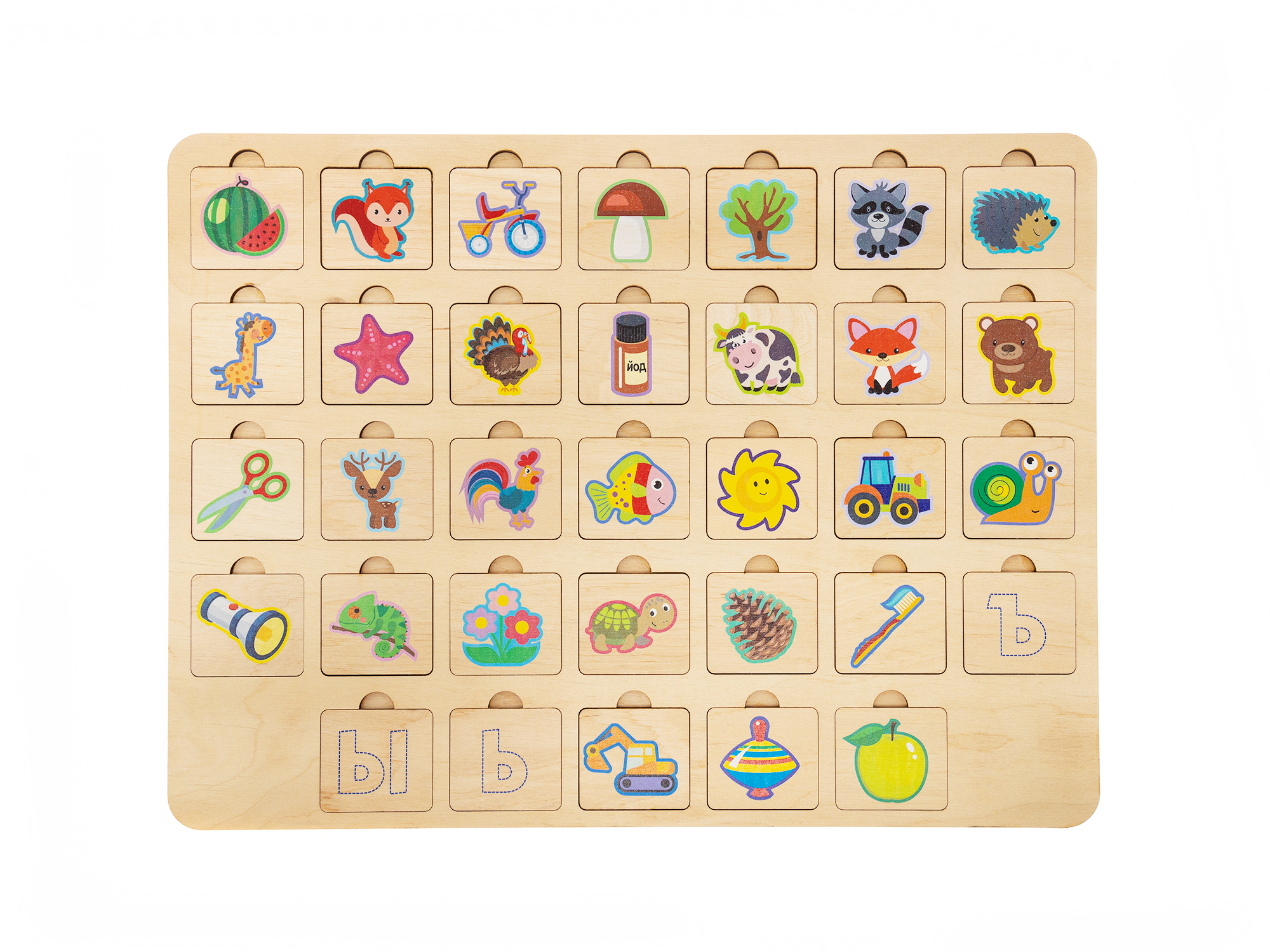 Деревянный пазл для детей «Азбука-2» – это увлекательное и познавательное приключение в мир букв и картинок!