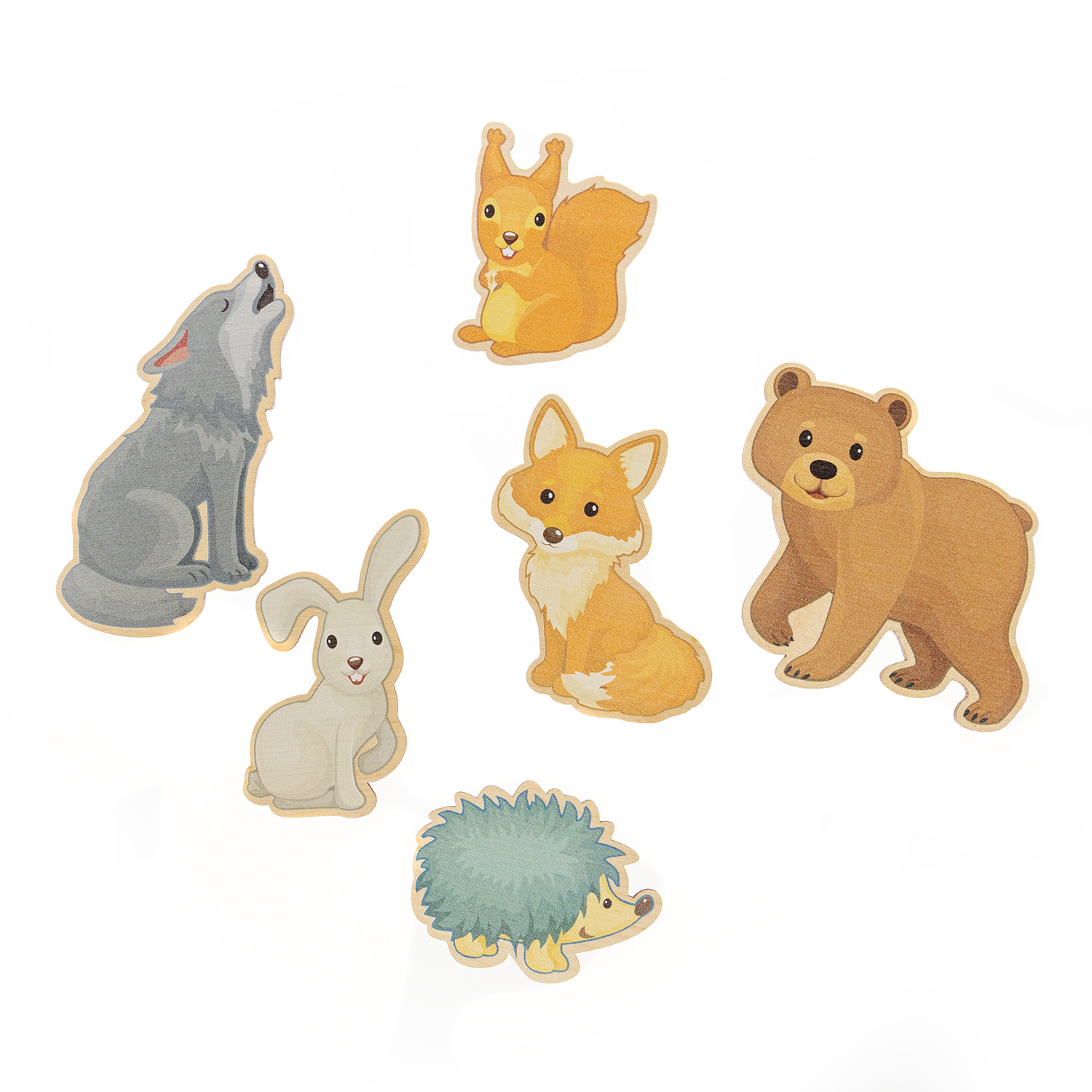 Игра состоит из игрового поля-основы с углублениями (21х21 см.) и 6 фигурок обитателей леса.
