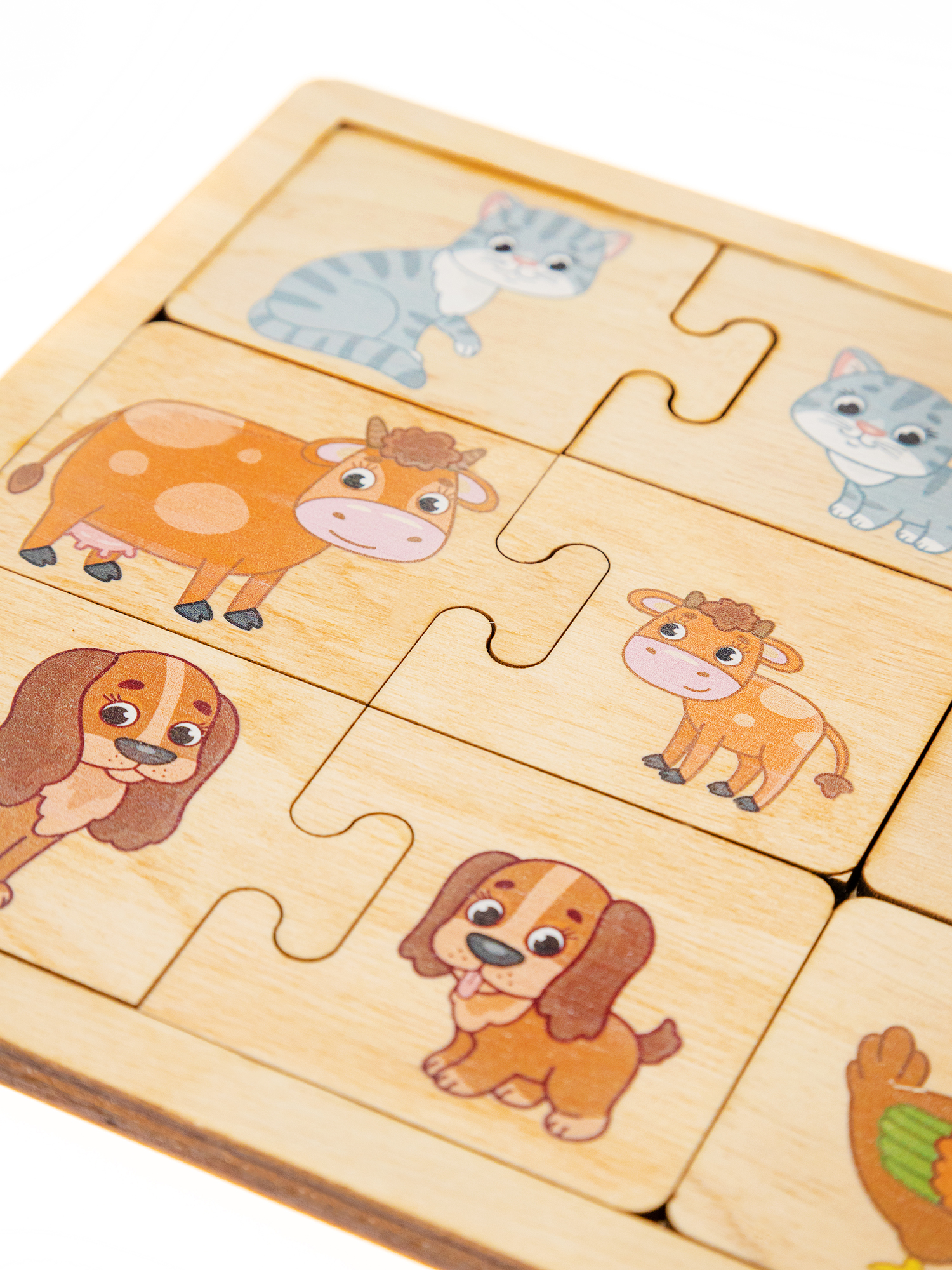 Попросите малыша разложить пазлы в нужном порядке и назвать каждое животное.