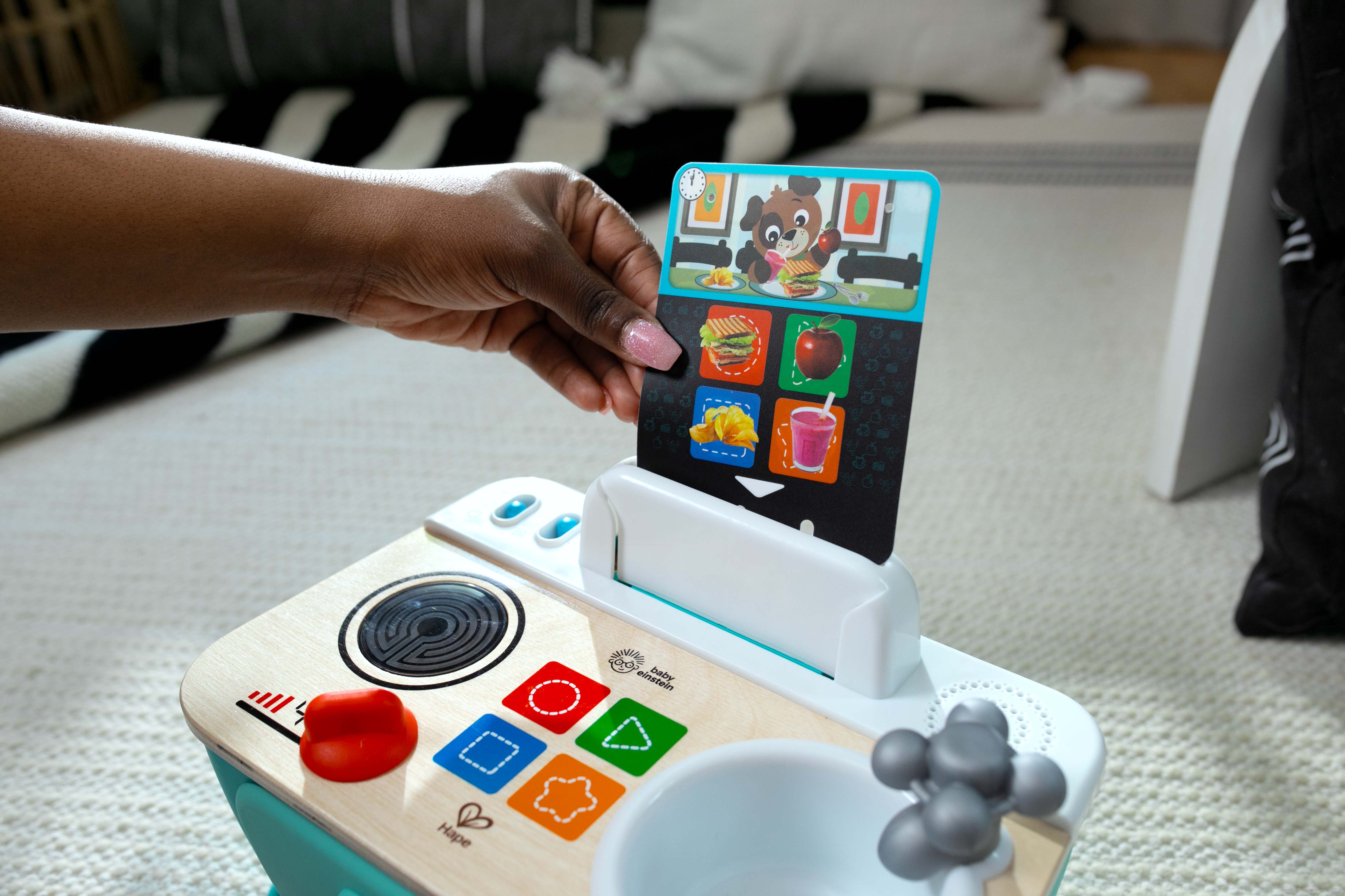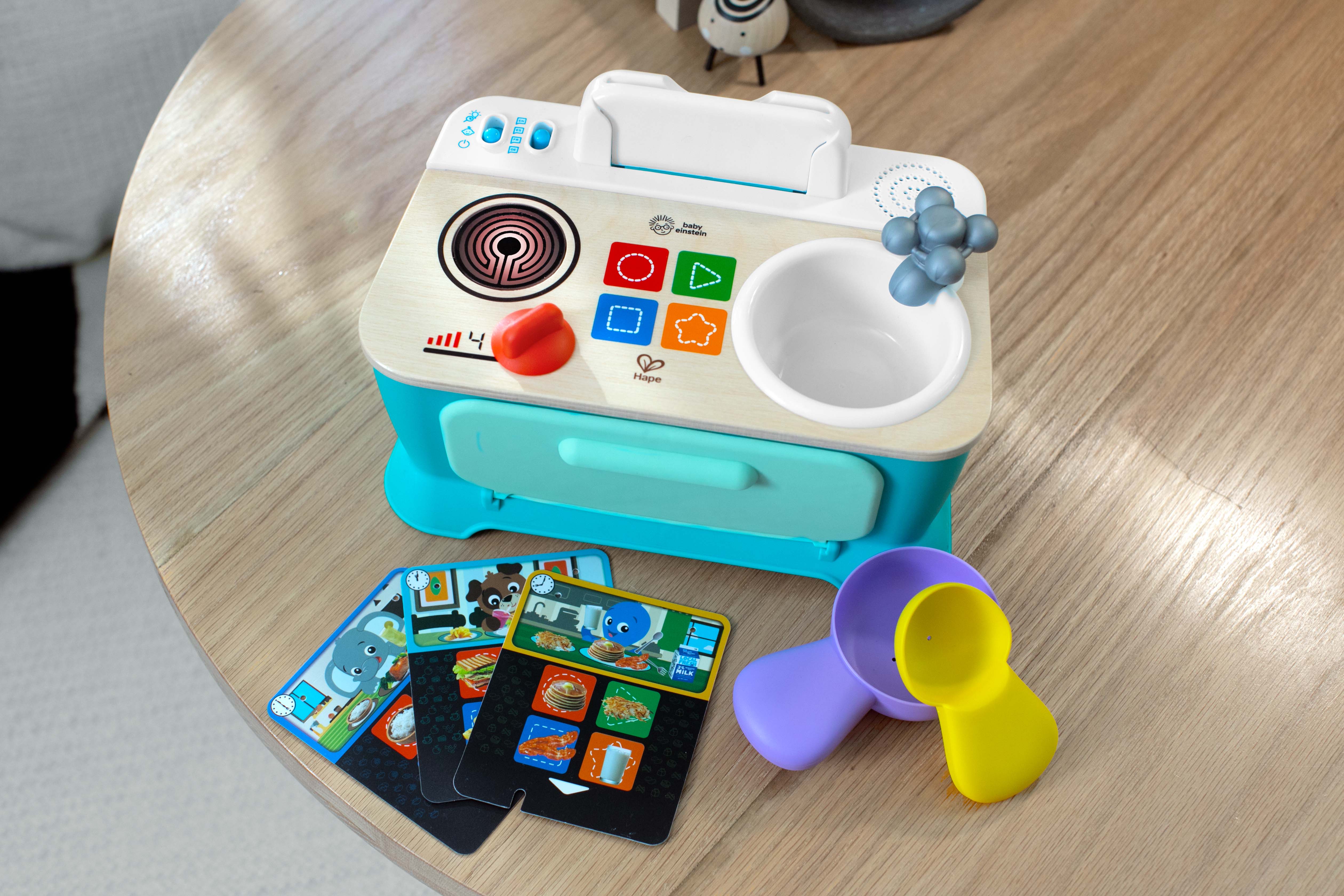 Вставьте карточку с рецептами кулинарных фраз, звуков и мелодий для полного погружения в игровой процесс. В режиме игры воспроизводятся звуки и мелодии приготовления пищи, знакомя малышей с темами ранней кухни. В набор входит: 1 кухня, 3 карты, 1 ложка, 1 сковорода, батарейки. |