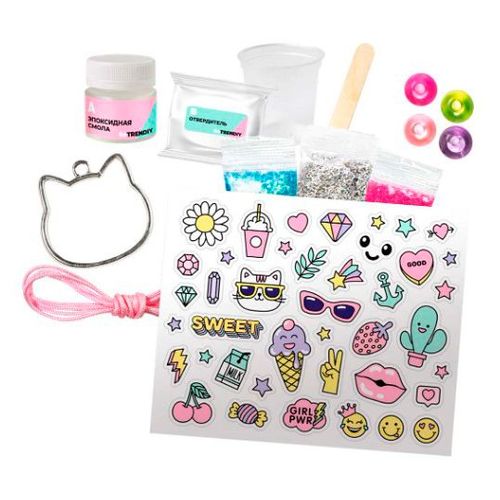 Be TrenDIY Epoxy – наборы по созданию трендовых украшений и аксессуаров из эпоксидной смолы. Замешай, залей и носи. В наборах подобраны фурнитура, декор, наклейки – готовые решения для создания украшений, которые хочется носить. Создавай свои уникальные украшения! Be TrenDIY, Be Yourself! Состав набора: баночки с эпоксидной смолой и отвердителем; пластиковые стаканчики; заготовка; пакетики с блестками; шаблон для заливки; палочка для размешивания.