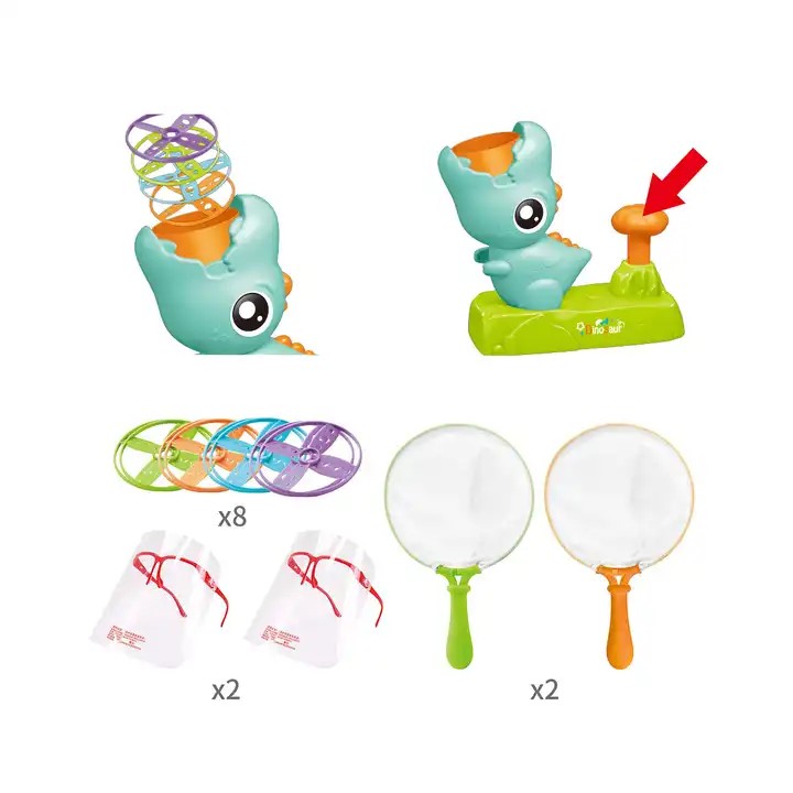 ЛЕГКО ИГРАТЬ: Просто поместите летающие тарелки в пасть динозавра, а затем шагните на них, чтобы запустить эти ракеты на высоту до 12 метров в воздух! Теперь вы можете ловить фрисби с помощью прилагаемого сачка. Он не требует батареек; Быстрая и простая сборка. Дети могут играть самостоятельно или вместе с другими детьми или родителями. Это идеальная уличная игрушка для малышей.
