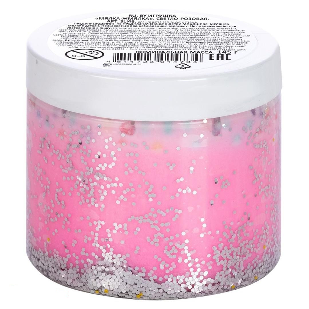 Светло-розовый зефирный слайм с серебряными блестками и цветными шариками. Номинальная масса: 145 г.