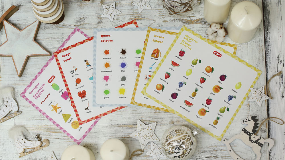 Слова разбиты на темы: 10 тем по 10 слов в каждой — только то, что необходимо для первого знакомства с английским языком. Карточки «заговорят», как только ребенок нажмет кнопку «Старт»!