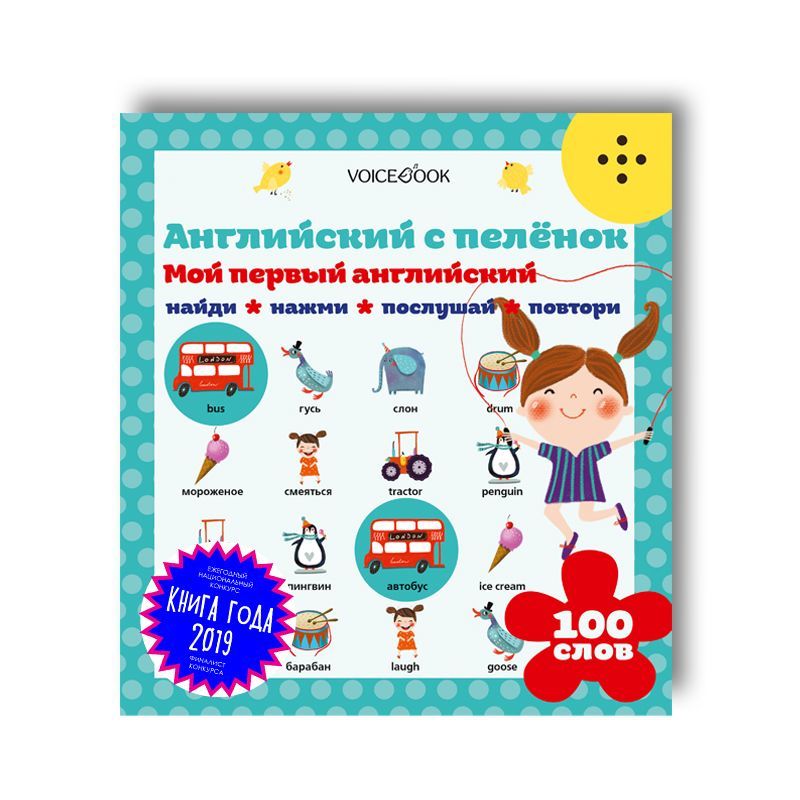 Интерактивная книга для изучения английского языка «Мой первый английский». Свои первые 100 слов малыш сможет выучить, находя одинаковые изображения: одна из картинок озвучена на русском языке, другая — на английском. Нажимая на рисунок и повторяя услышанное, ребенок запоминает, как звучит и пишется то или иное слово, учится его произносить.