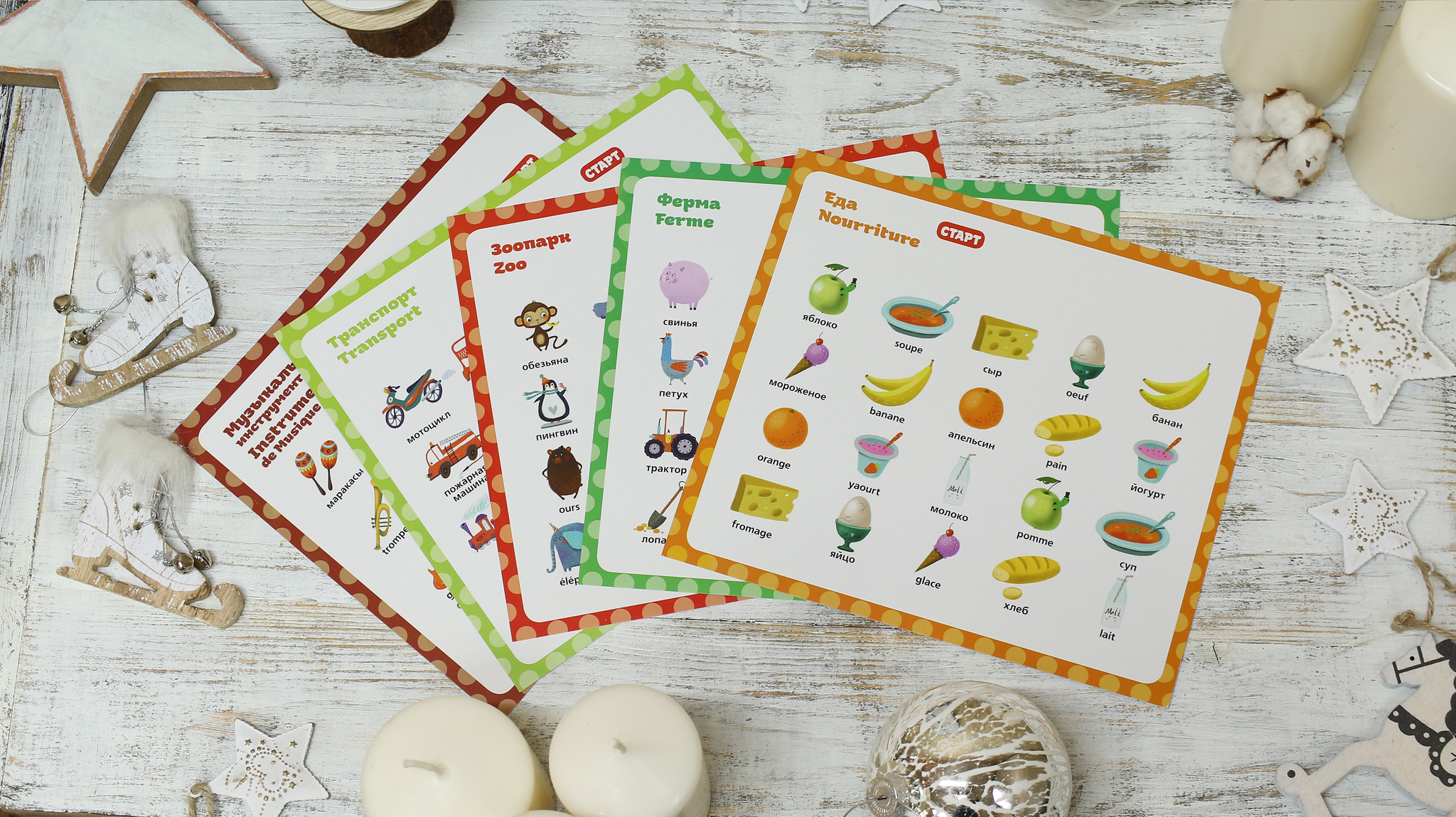 Слова озвучены профессиональными дикторами-носителями языка, поэтому ребенок сразу выучит правильное произношение. Заниматься с ребенком может и няня, и бабушка — знать язык совсем не обязательно!