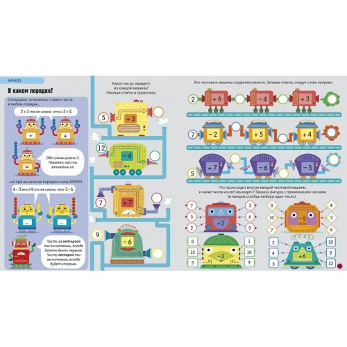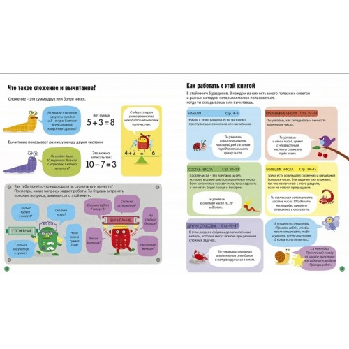 Каждый разворот - это настоящее приключение в мире сложения и вычитания. Выполняй задания, раскрашивай, узнавай, разглядывай и клей наклейки!