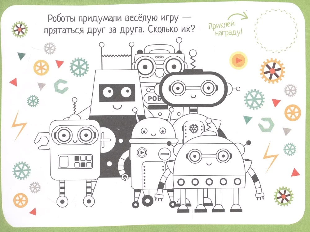 Пособие включает в себя 70 наклеек и весёлые задания, в которых нужно найти соответствия между картинками. Ребёнка ждут запутанные лабиринты, игры с буквами и цифрами, картинки с отличиями, магические квадраты, раскраски. За каждое выполненное задание ребёнок получает награду - яркую наклейку. Он сам выбирает понравившуюся картинку и приклеивает на станичку. Небольшие книжки удобно брать в дорогу.
