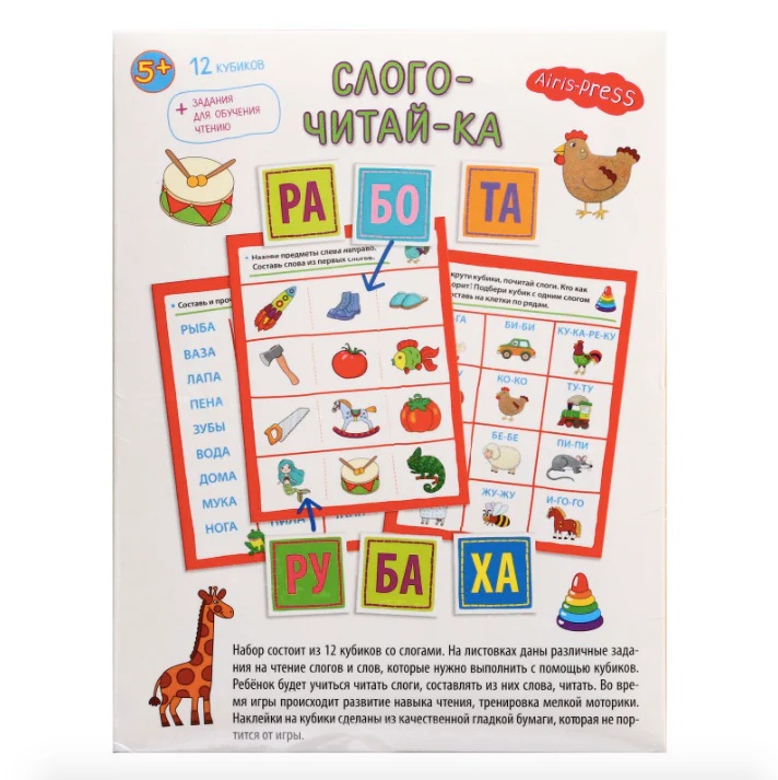 IQ кубики. 12 кубиков в поддончике. Читаем по слогам. Слогочитай-ка. 5+