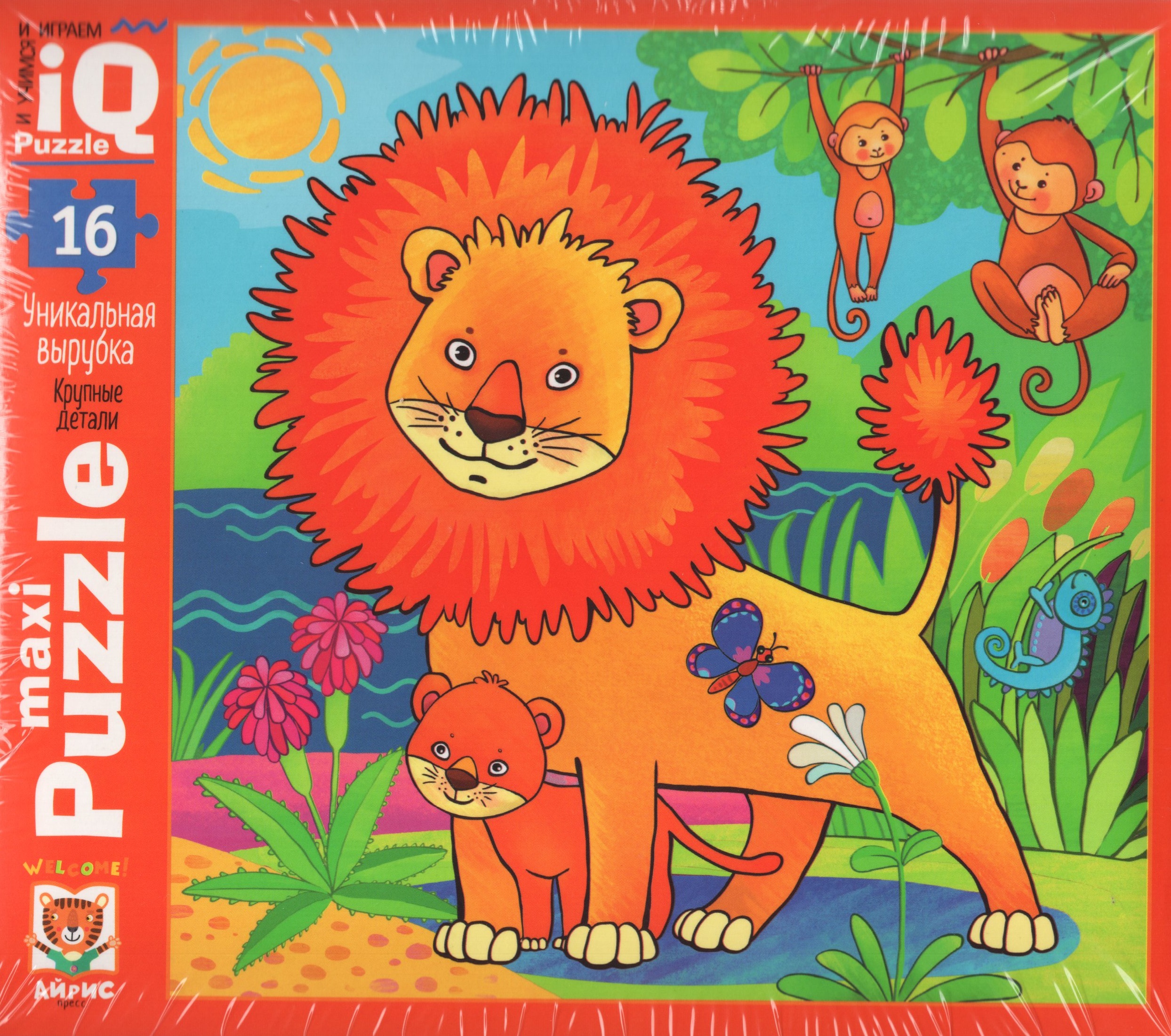 Пазл с изображением льва состоит из 16 элементов. Размер картинки 32х32 см. Большие детали не имеют опасных острых углов и выполнены из плотного толстого картона. Благодаря этому они ровно лежат, замки легко соединяются и хорошо держатся. По тактильным ощущениям малыш сразу понимает, правильно ли он собрал пазл. Размер и содержание картинок соответствуют возрасту ребёнка. Чёткие, яркие, лаконичные изображения с добрыми героями подобраны с учётом детского восприятия. Детали высечены уникальным штампом — каждая деталь имеет свою форму и встаёт только на своё место. Это позволяет собирать пазл с оборота, без опоры на картинку (метод слепой сборки). Такой способ особенно важен для развития ребёнка. Пазлы продуманы и с методической точки зрения. В разработке игр принимали участие ведущие нейропсихологи. Развивающие методики так «вшиты» в игру, что родителям остаётся просто играть с малышом, а его развитие будет происходить само собой. Предназначено для детей от 2 лет.