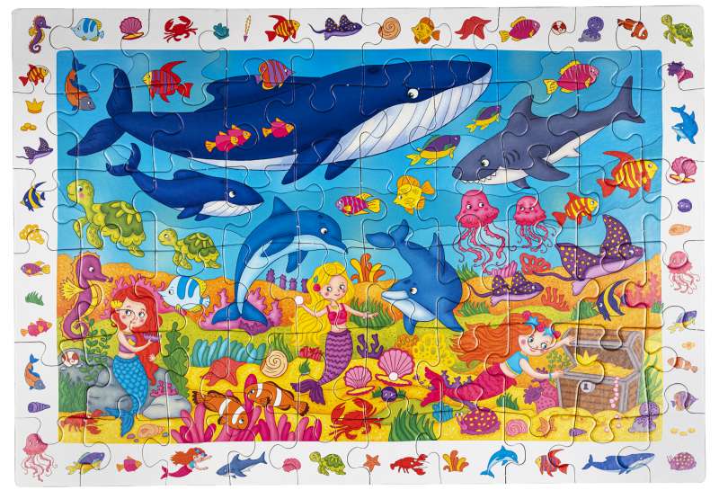 Яркая и увлекательная головоломка из серии «IQ пазлы» не только порадует и надолго увлечёт ребёнка, но и поможет ему подготовиться к учёбе. Собирая сюжетный рисунок, он потренирует внимание, мелкую моторику и усидчивость, научится самостоятельности и разовьёт логическое и пространственное мышление. В коробке 60 деталей, которые складываются в картинку с русалочками и их друзьями — забавными морскими обитателями. Но соотнести элементы друг с другом и собрать рисунок — это только полдела. Когда пазл будет готов, попросите ребёнка найти на рисунке предметы, расположенные в рамке по контуру — такая игра на внимание понравится и самым маленьким детям, и ребятам постарше. И ещё одна особенность «IQ пазлов»: каждая их деталь имеет уникальную форму и встаёт только на своё место. Поэтому пазл можно складывать несколькими способами, в том числе с оборота, без опоры на картинку.