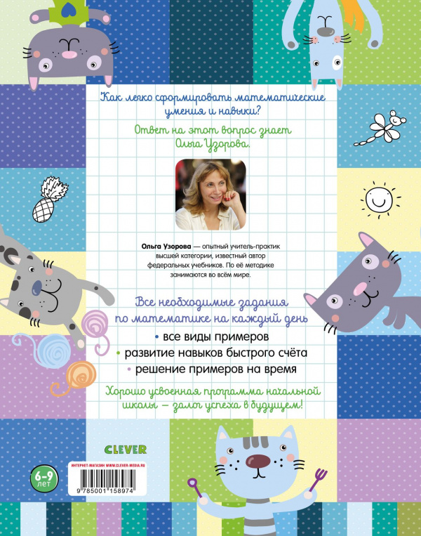 Все мы знаем, что хорошо усвоенная программа начальной школы — залoг успеха в будущем! А легендарный учитель и автор бестселлеров учебной литературы, один из главных экспертов издательства Clever Ольга Узорова знает, как уместить полный курс начальной школы в одной увлекательной книге и при этом в игровой форме научить малышей основам математики.