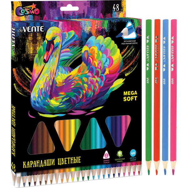 Карандаши цветные "deVENTE. Trio Mega Soft" 48 цветов, 4М, диаметр грифеля 3 мм, трехгранные, в картонной коробке.