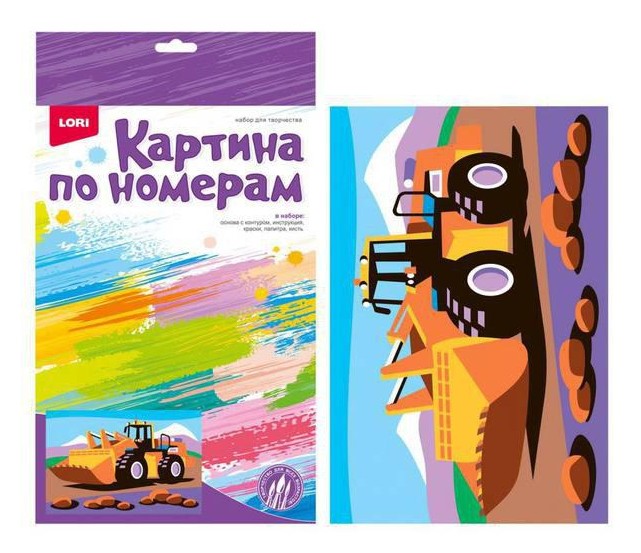 В набор входит картина для раскрашивания, на которую нанесена нумерованная схема рисунка, набор акриловых красок и кисть.