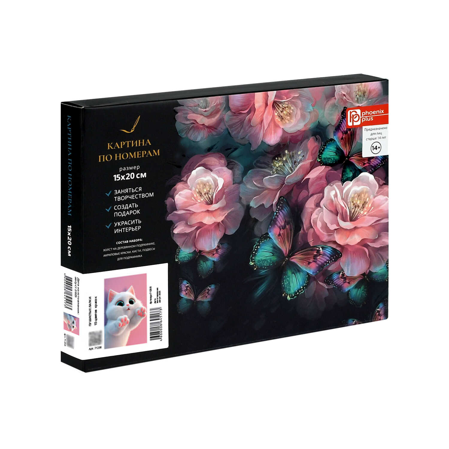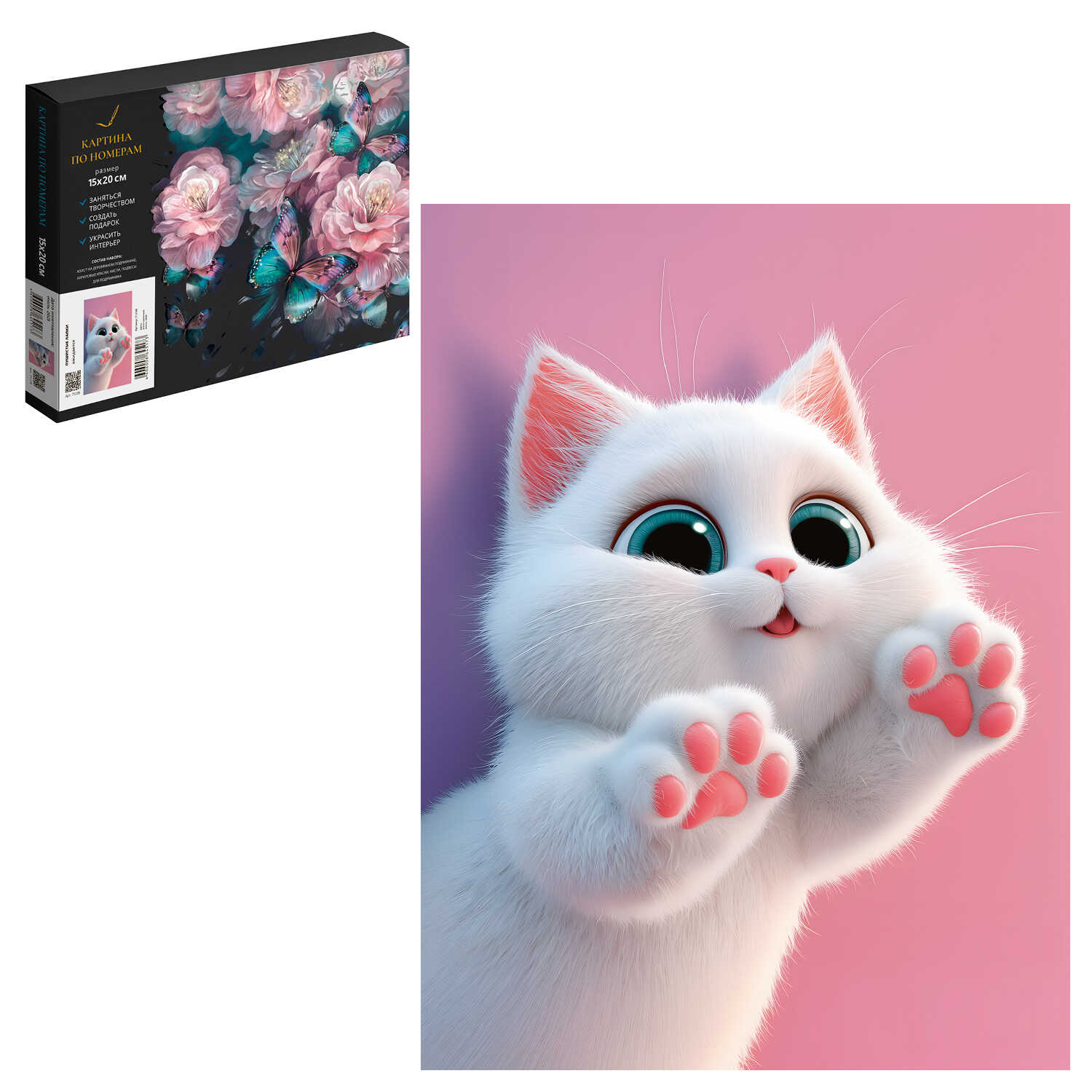 Набор для творчества Картина по номерам арт. 71238 / 50 ПУШИСТЫЕ ЛАПКИ, размер: 15х20 см, холст на деревянном подрамнике с напечатанной схемой рисунка, контрольный лист с нанесенной схемой, краски акриловые на водной основе (упакованы в вакуумную упаковку), кисти художественные с ворсом из нейлона – 4 шт., подвесы для подрамника, пакет на zip-молнии, лак в комплекте, картонная коробка)