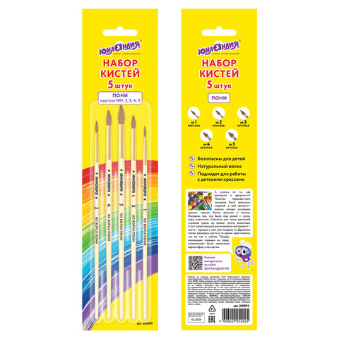 Набор из пяти кистей разного размера ЮНЛАНДИЯ позволяет начинающим художникам решать любые творческие задачи в детском саду, школе и дома.
