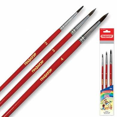 Кисти из волоса пони отлично впитывают и отдают краску, хорошо держат форму, долговечны и надежны. Благодаря кистям № 2 и 3 ребенку будет комфортно прорисовывать мелкие детали. Кисть № 4 позволит делать более крупные мазки и линии. Деревянную лакированную рукоятку кисти удобно держать в руке.