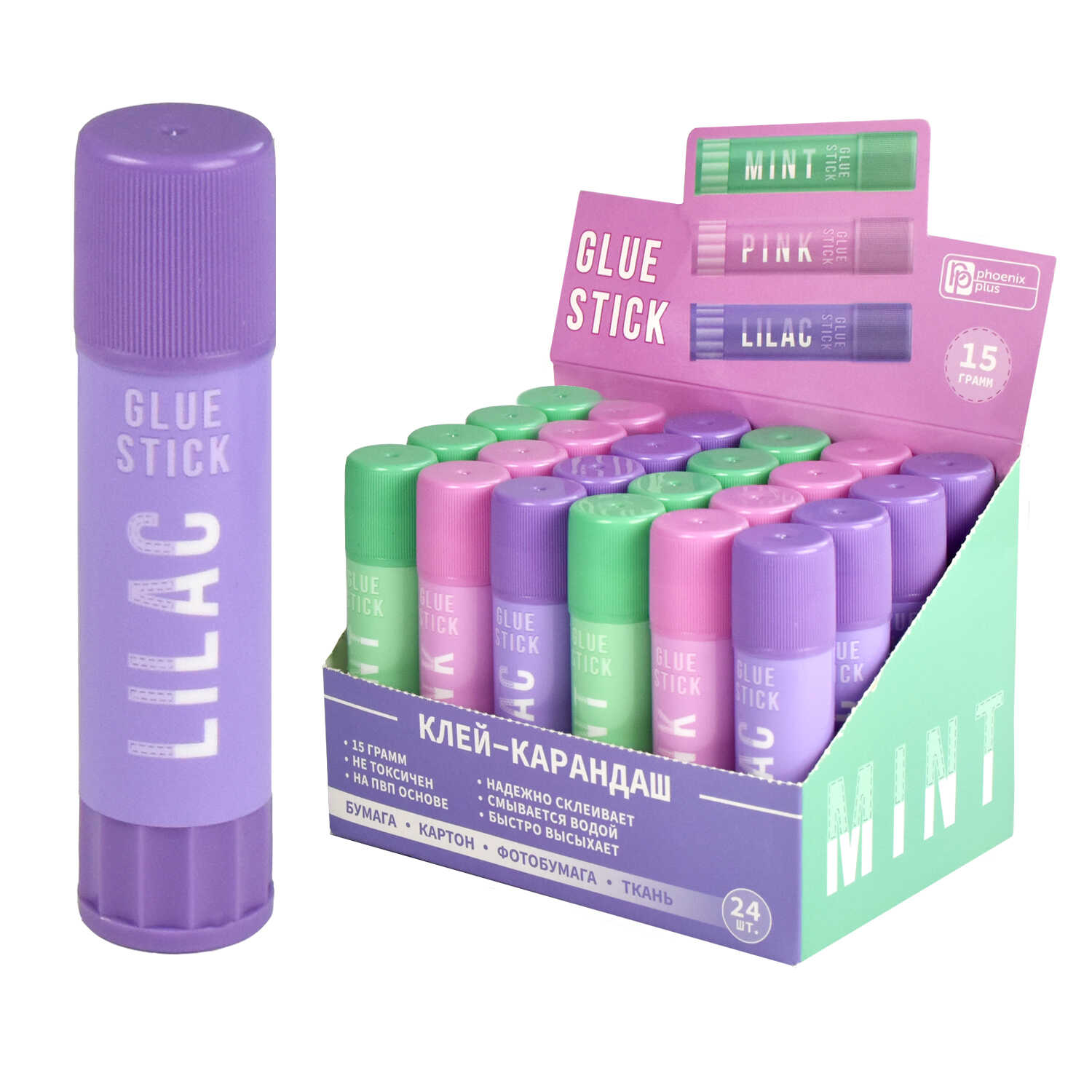 Клей-карандаш ассорти, вес: 15 грамм.