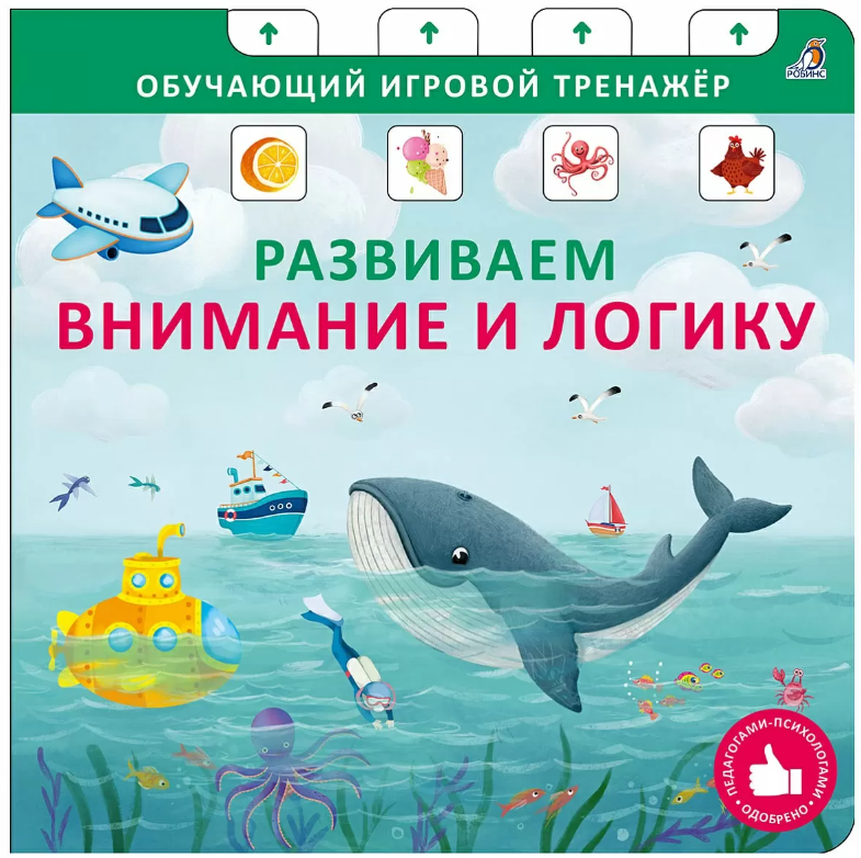 Обучающий игровой тренажёр «Развиваем внимание и логику» - это пособие, которое поможет развить наглядно-образное и словесно-логическое мышление, внимание, зрительное восприятие, речь и воображение, а также умение классифицировать, сравнивать, обобщать, устанавливать причинно-следственные и логические связи. На каждом развороте вас ждут красочные картинки и интересные задания: найди нелепицы, лишние картинки, обобщать одним словом, использовать правильные предлоги, описать положение в пространстве и свойства предметов и т. п.