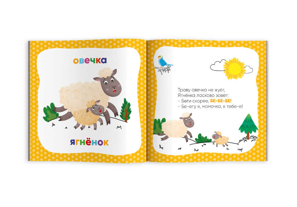 В возрасте одного-двух лет ребёнок начинает активно изучать окружающий мир. Крупные и яркие иллюстрации помогут малышу познакомиться с животными и их детёнышами. Занятия развивают слуховое восприятие и речь малыша, расширяют его кругозор.