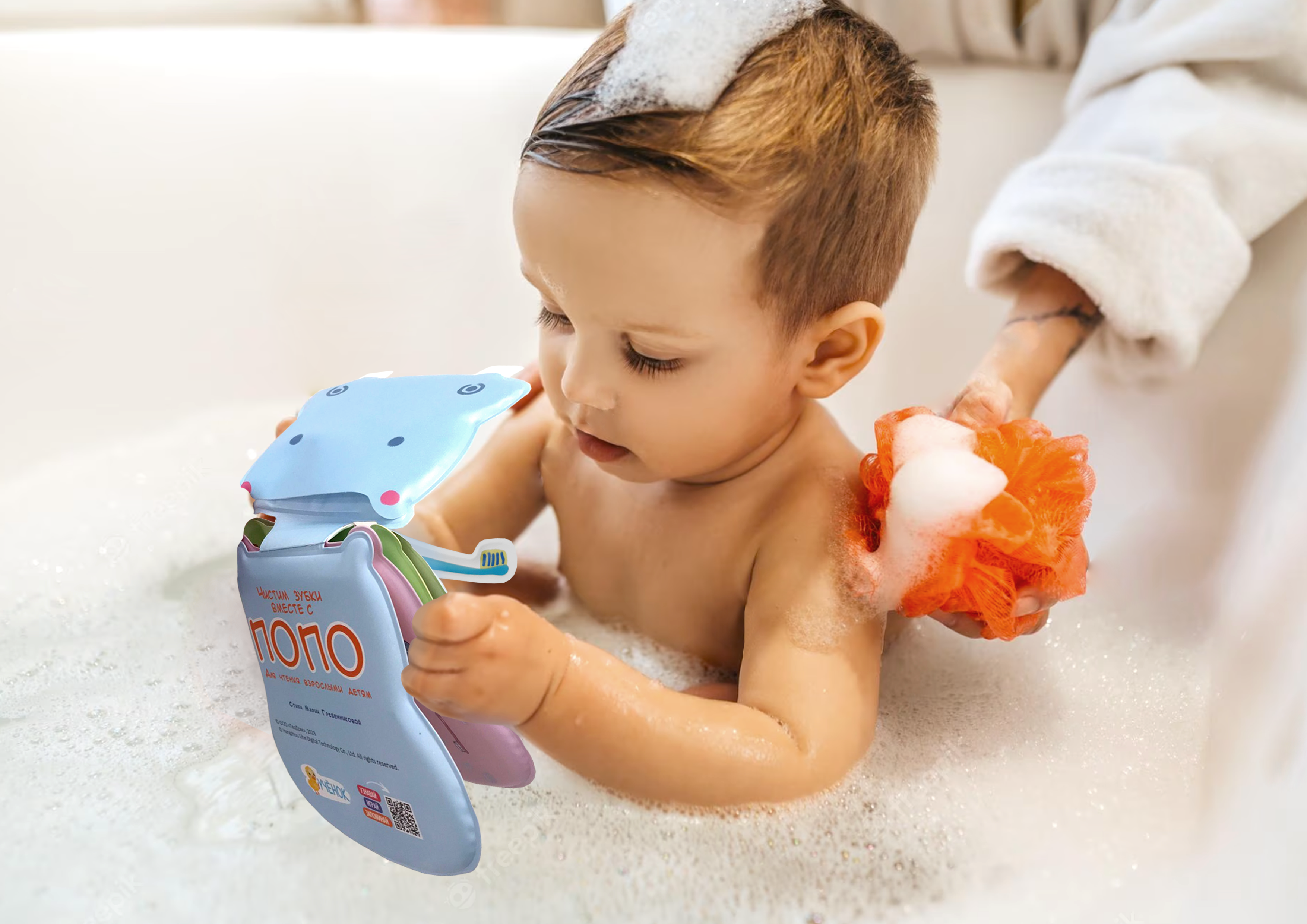 Книжка для ванной с игрушечной зубной щеткой. Бегемотик Попо