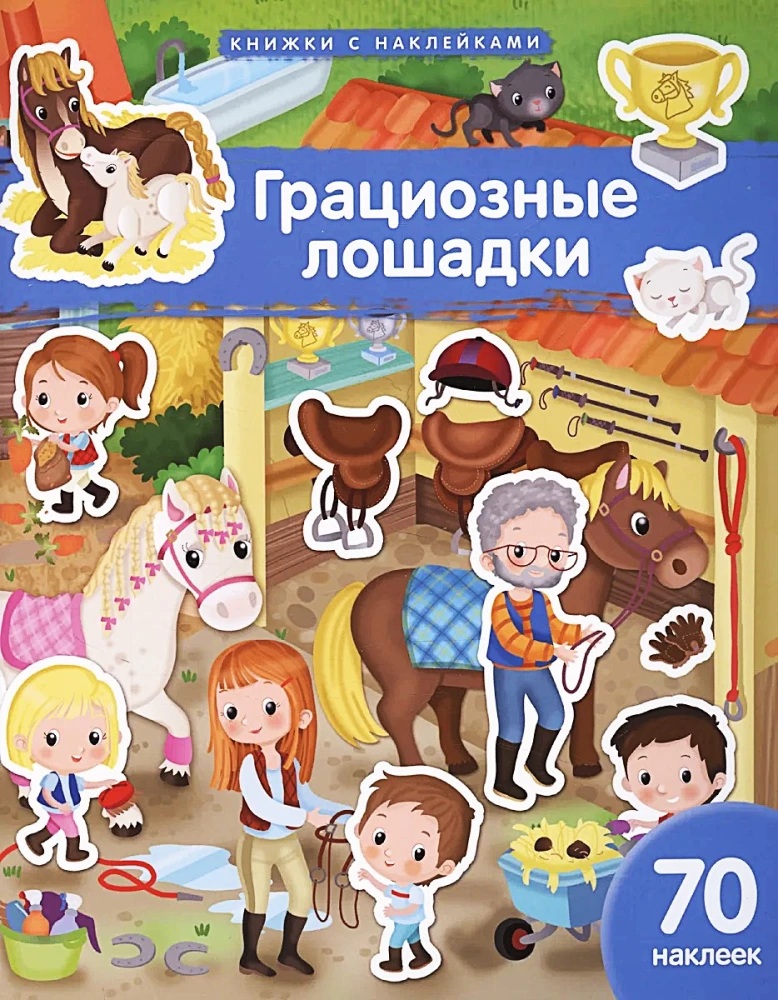 Книжка с наклейками формат А4.Грациозные лошадки. 70 наклеек.