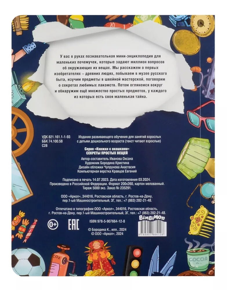 Это познавательная мини-энциклопедия для маленьких почемучек, которые задают миллион вопросов об окружающих их вещах. Мы расскажем о первых изобретателях-древних людях, побываем в музее русского быта, изучим предметы в швейной мастерской, поговорим о секретах любимых лакомств. Потом оглянемся вокруг и обнаружим ещё множество простых предметов, у каждого из которых есть своя маленькая тайна.