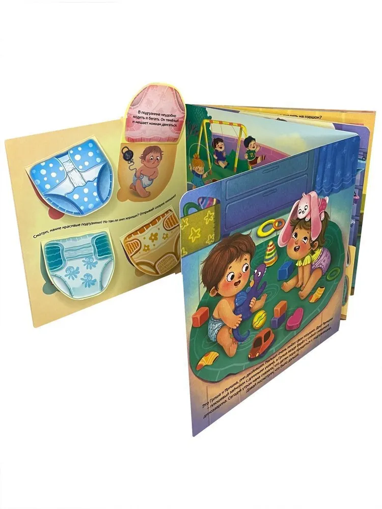 Приучение к горшку – важный этап в жизни любого малыша. Хочется, чтобы все прошло быстро и безболезненно. Наша книжка поможет в этом!Вместе с Гришей и Иришкой мы узнаем, почему пора отказываться от подгузника, выберем горшок и пару ярких трусиков. У наших героев не всё получается сразу, но они не унывают и пробуют снова и снова.Яркие картинки, интересные сюжеты и окошки с секретиками помогут малышу забыть про подгузники и научиться пользоваться горшком.