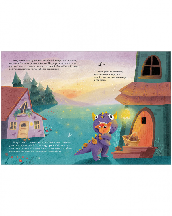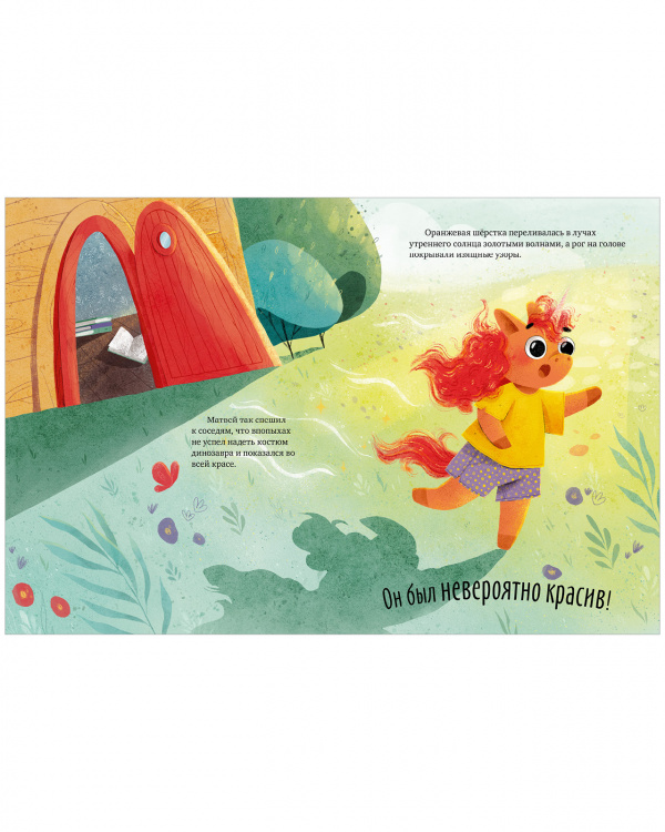 Юный читатель познакомится с очаровательным единорогом Матвеем, который жил на опушке Хвойного леса в маленьком домике. А необычным он был потому, что все время ходил в костюме динозавра. Из-за этого костюма ему было сложно играть, говорить и веселиться. Другие единороги считали его странным и не общались с ним. Удастся ли Матвею найти друзей и показать им свою истинную красоту?