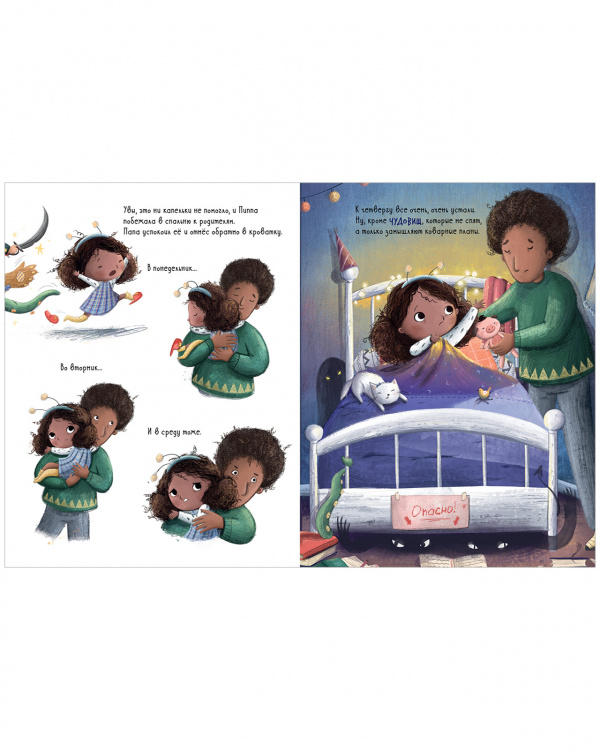 Книга «Пиппа, кошмарики и ночной карнавал» с небольшим количеством текста и замечательными иллюстрациями от английской художницы Люси Флеминг станет путеводителем в мире детской фантазии и борьбе со страхами.