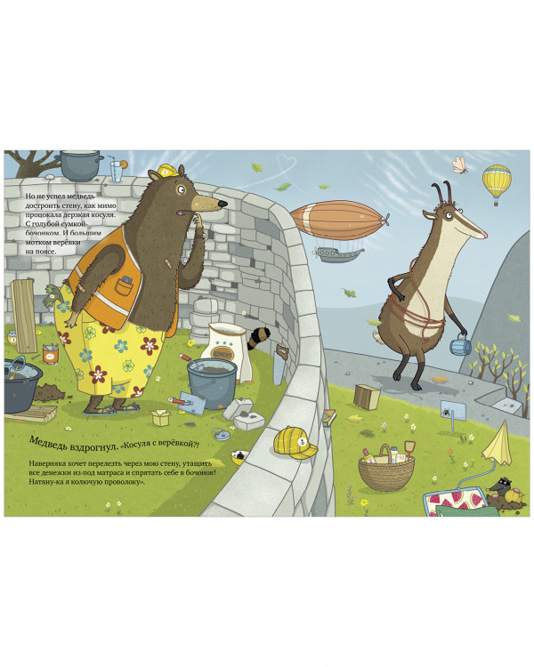 Одним прекрасным осенним утром медведь присел на лавочку и устало выдохнул. Он всё лето собирал цветочный мёд, продал его и теперь был сказочно богат. Казалось бы, живи себе припеваючи. Но нет! Наш медведь оказался крайне подозрительным, даже можно сказать, ПОДОЗРЕВАЮЩИМ что-то. Иначе зачем трусливая курица несёт что-то в мешке? Куда упрямый олень тащит бревно? Зачем дерзкой косуле верёвка, ворчливому сурку высокая лестница, а зайцу-весельчаку… ВЗРЫВЧАТКА? Не иначе как готовится ограбление…