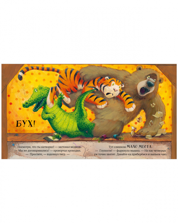 Книжка-картинка «Всем хватит места!» покажет, что целеустремленность и оптимизм даже маленьким мышкам помогают сворачивать горы. Она создана для первого чтения с малышами 3–5 лет: по большим сюжетным иллюстрациям ребенок без труда сможет «прочитать» историю, а текста на страницах ровно столько, чтобы он не успел заскучать.