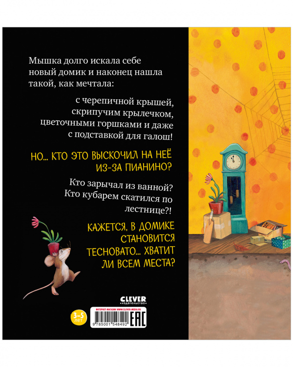 Мышка долго искала себе новый домик и наконец нашла такой, о котором мечтала. Но… кто это выскочил на нее из-за пианино? Кто зарычал из ванной? Кто кубарем скатился по лестнице?! Кажется, в домике тесновато… Хватит ли всем места?