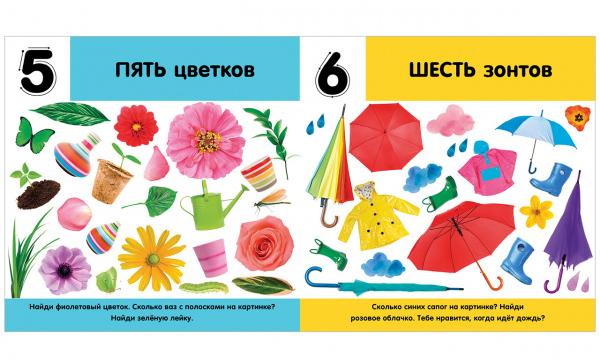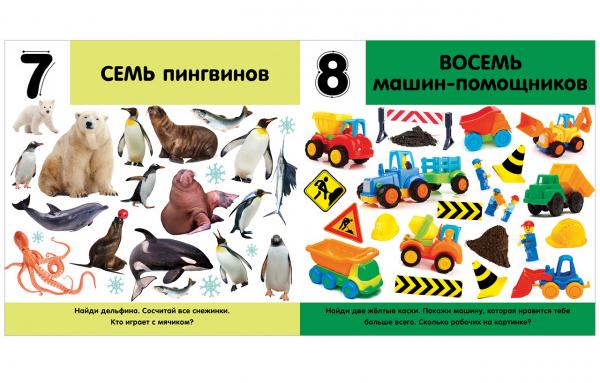 Благодаря большому формату издание вмещает на своих страницах множество предметов и займет ребенка надолго. А яркие фотографии и плотный картон позволят с успехом заниматься по книге даже с самыми маленькими читателями.
