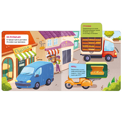 Книжка с окошками «В городе» познакомит ребенка с транспортом, который можно встретить на городских улицах. На каждом развороте — несколько окошек с сюрпризами: под ними прячутся познавательные стихи про транспорт и картинка внутреннего устройства. Подробные иллюстрации интересно рассматривать даже самым юным читателям. А интересные стихи расскажут больше о каждой машинке.