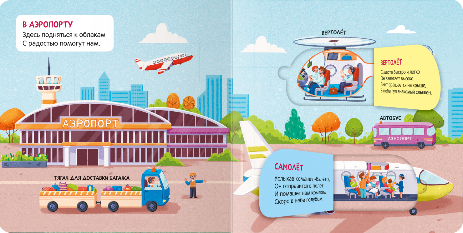 Книжка с окошками «В путешествии» познакомит ребенка с воздушным, водным и наземным транспортом, на котором можно отправиться в дальние края. На каждом развороте — несколько окошек с сюрпризами: под ними прячутся познавательные стихи про транспорт и картинка внутреннего устройства. Подробные иллюстрации интересно рассматривать даже самым юным читателям. А интересные стихи расскажут больше о каждой машинке.