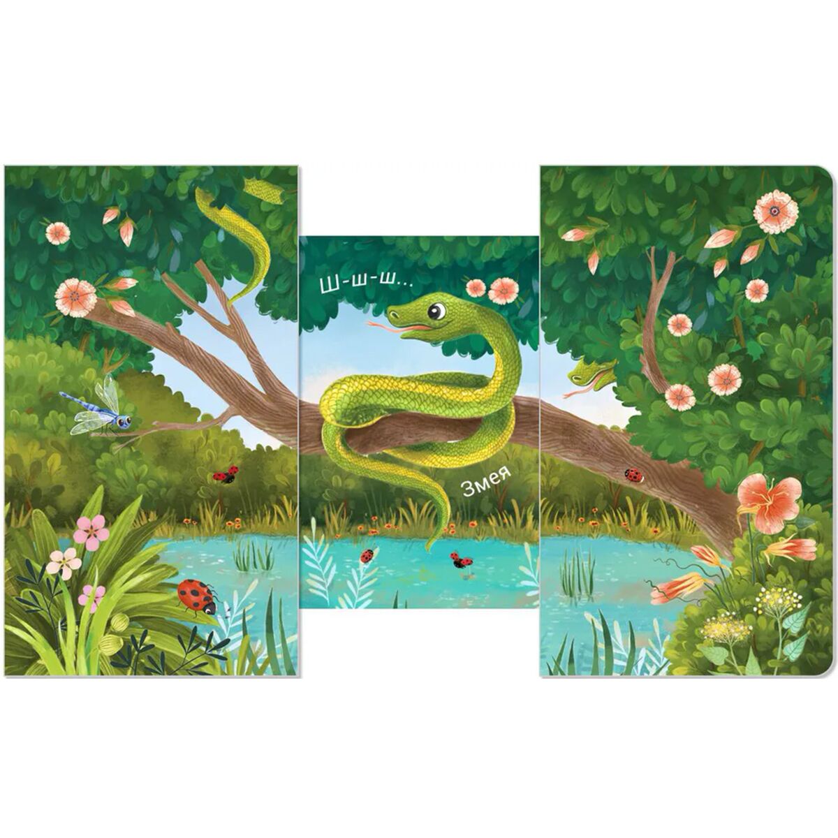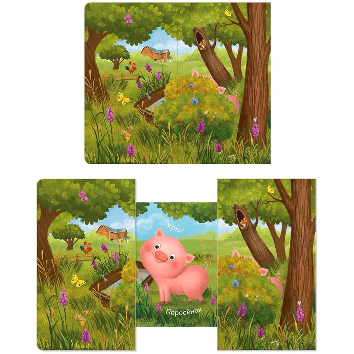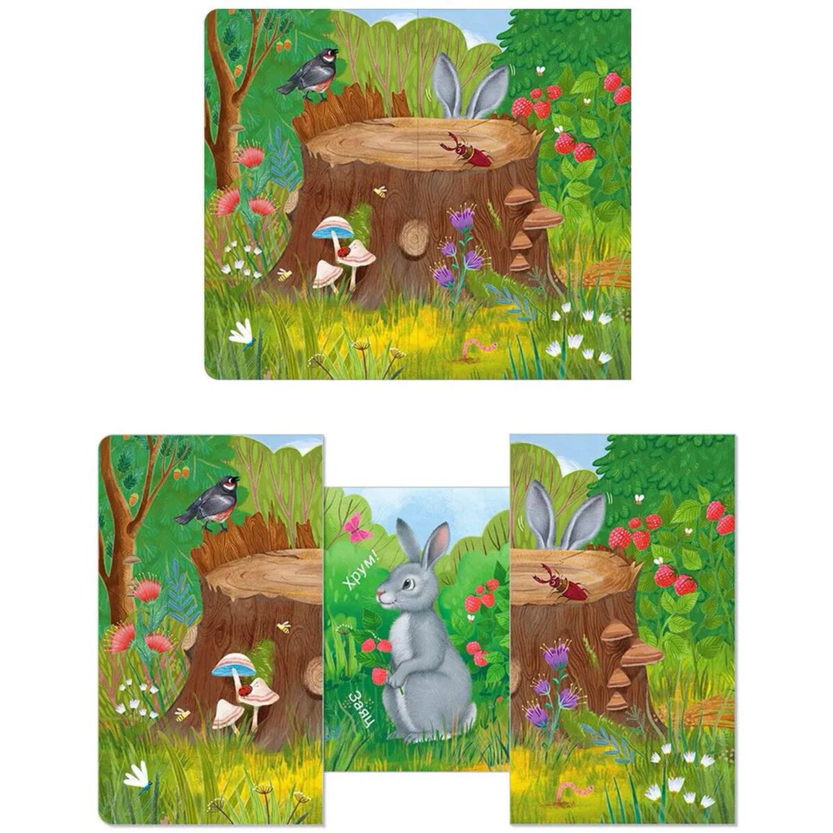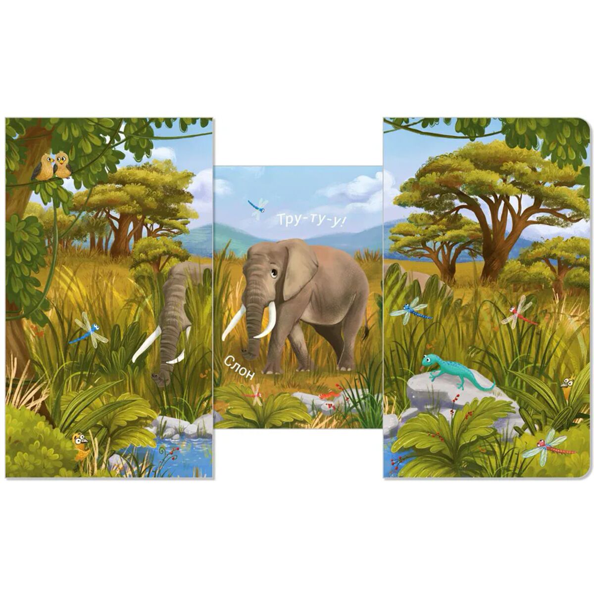 Раздвижная книжка-картонка «КТО ТАМ СПРЯТАЛСЯ?» познакомит вашего малыша с животными, которые спрятались в среде обитания, а задача ребёнка ‒ попытаться отгадать, кто там скрывается!