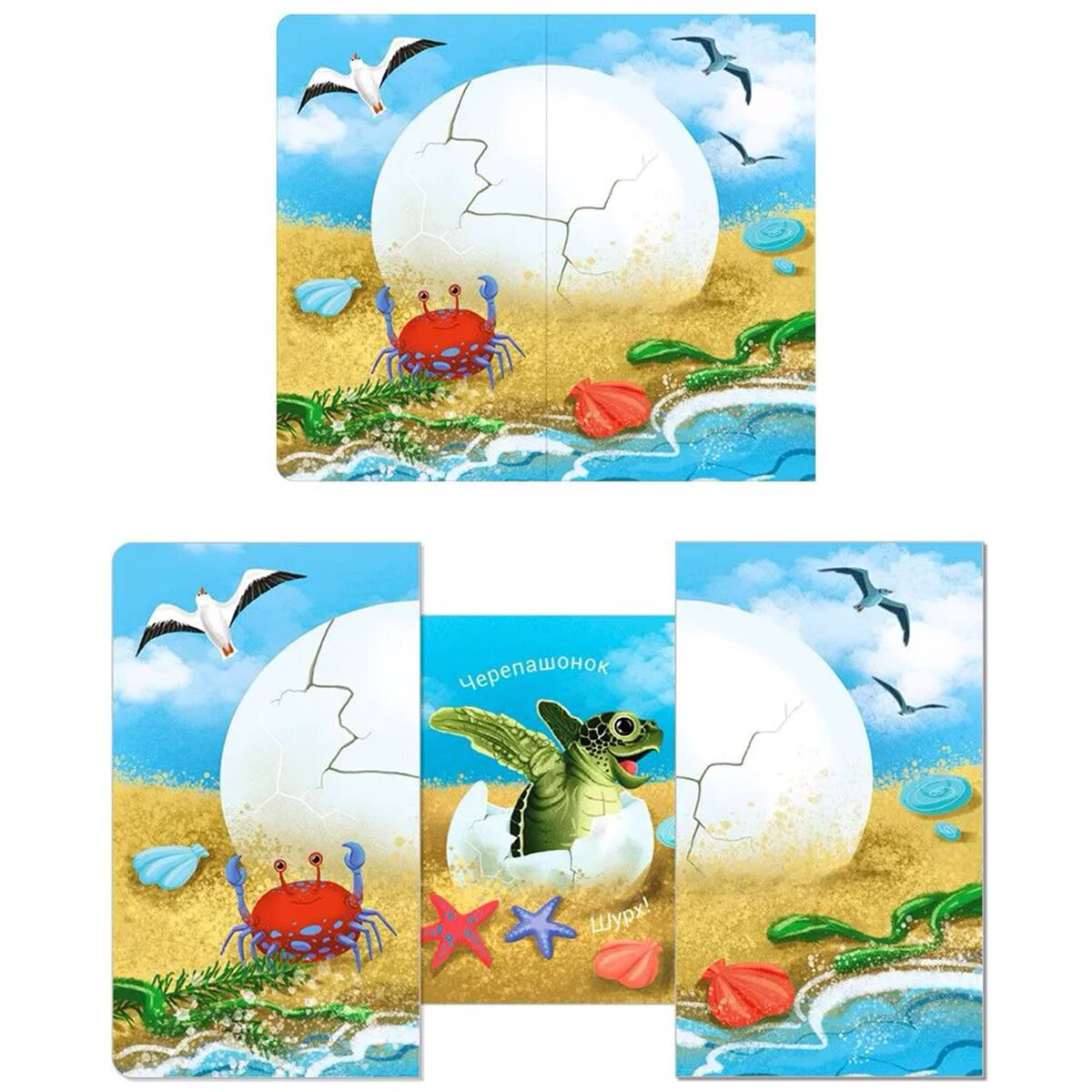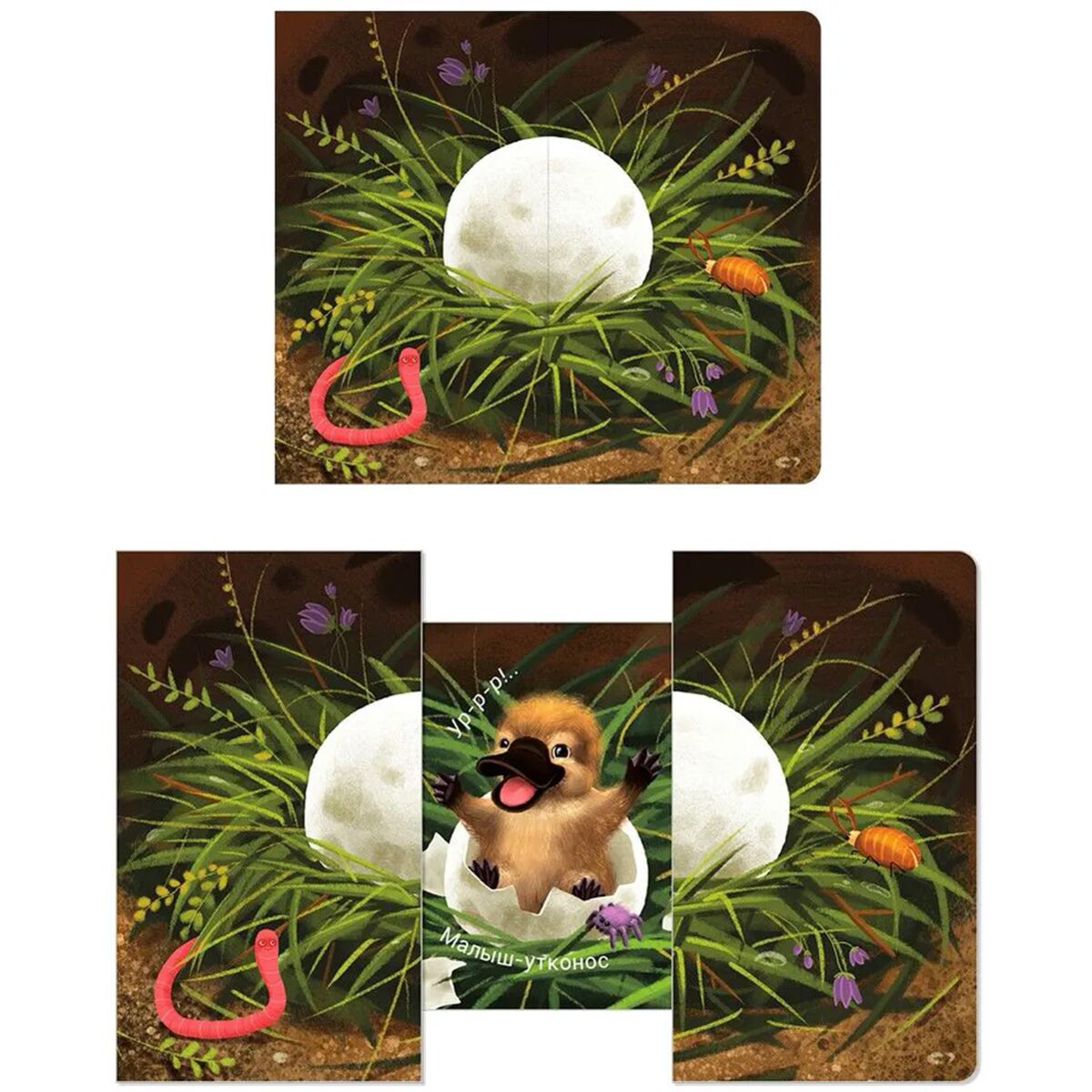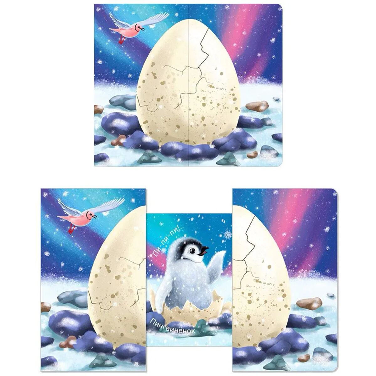 Раздвижная книжка-картонка «КТО ТАМ ВНУТРИ?» познакомит вашего малыша с животными, которые вылупляются из яиц. Они самые разные и удивительные: черепашка, пингвин, цыплёнок и даже динозавр!