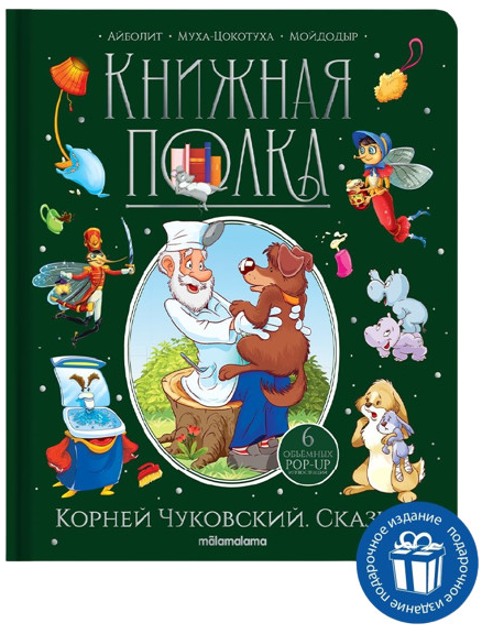 В серию «Книжная полка» попали произведения самых любимых писателей. Сборник «Корней Чуковский. Сказки» содержит в себе знаменитые сказки знаменитого детского классика. Истории о докторе Айболите, об отважном комаре и гостеприимной Мухе-Цокотухе, об умывальников начальнике и мочалок командире оживут перед малышом в объёмных красочных иллюстрациях. Окунитесь в неповторимый мир творчества Корнея Ивановича Чуковского — читайте книги из серии «Книжная полка» от торговой марки Malamalama.