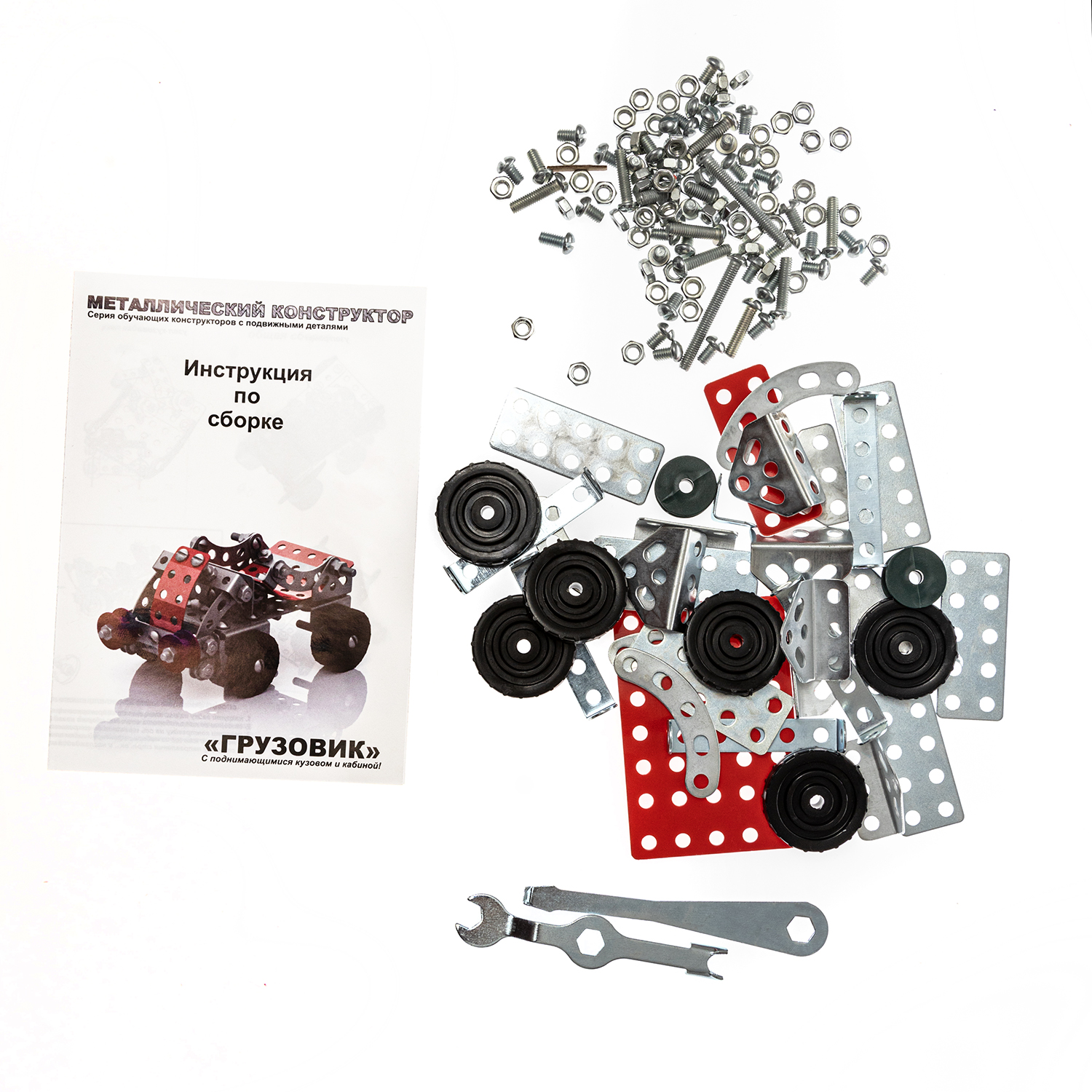 Откройте для своего ребёнка увлекательный мир конструирования! Соберите своими руками модель грузовика, у которого поднимаются кузов и кабина, с обучающим набором металлического конструктора «Грузовик».