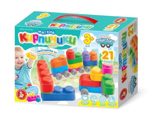 Мягкие кирпичики для детей «Весёлый транспорт» из 21 детали с колёсиками – это не только возможность собрать разнообразный вид транспорта от автомобиля до вертолета, но и способ развить в ребёнке творческие способности и тактильные навыки.