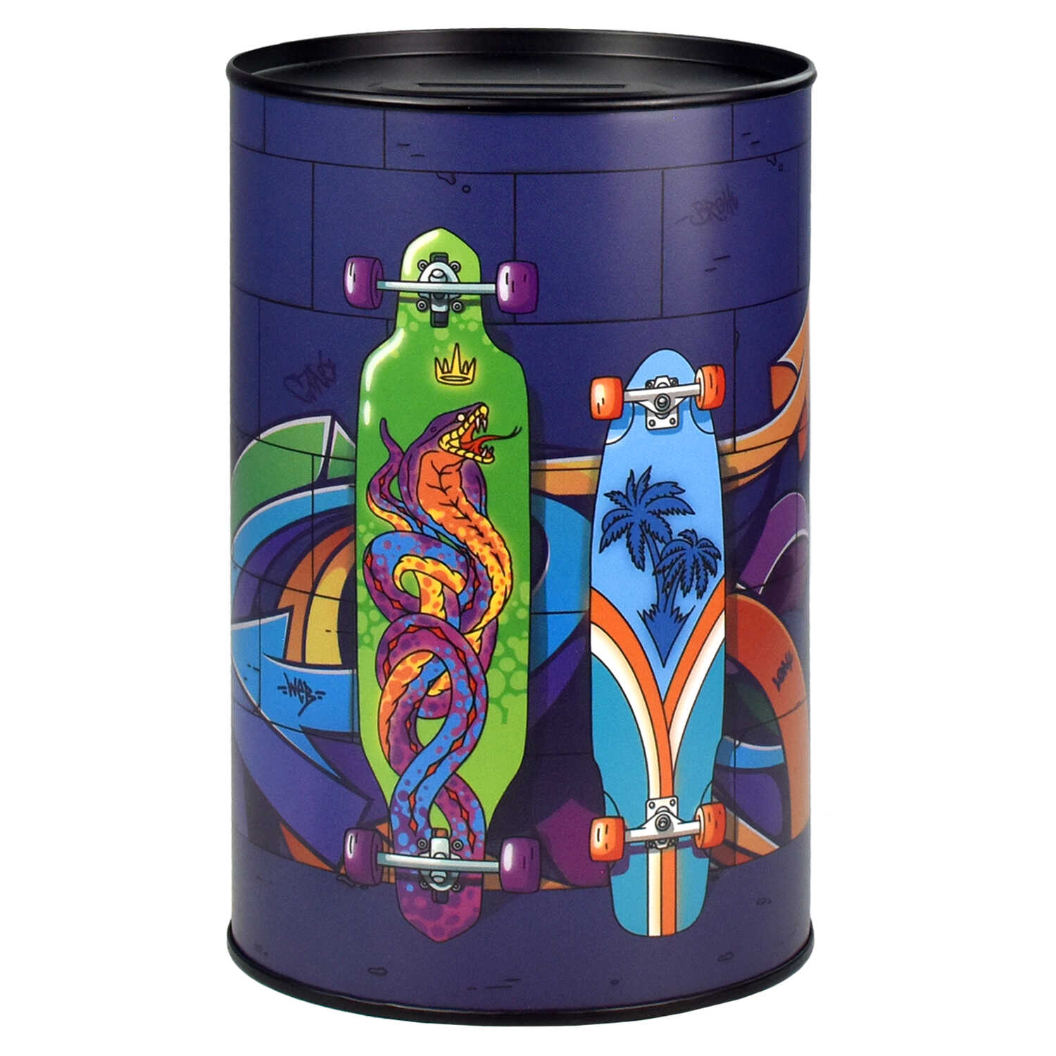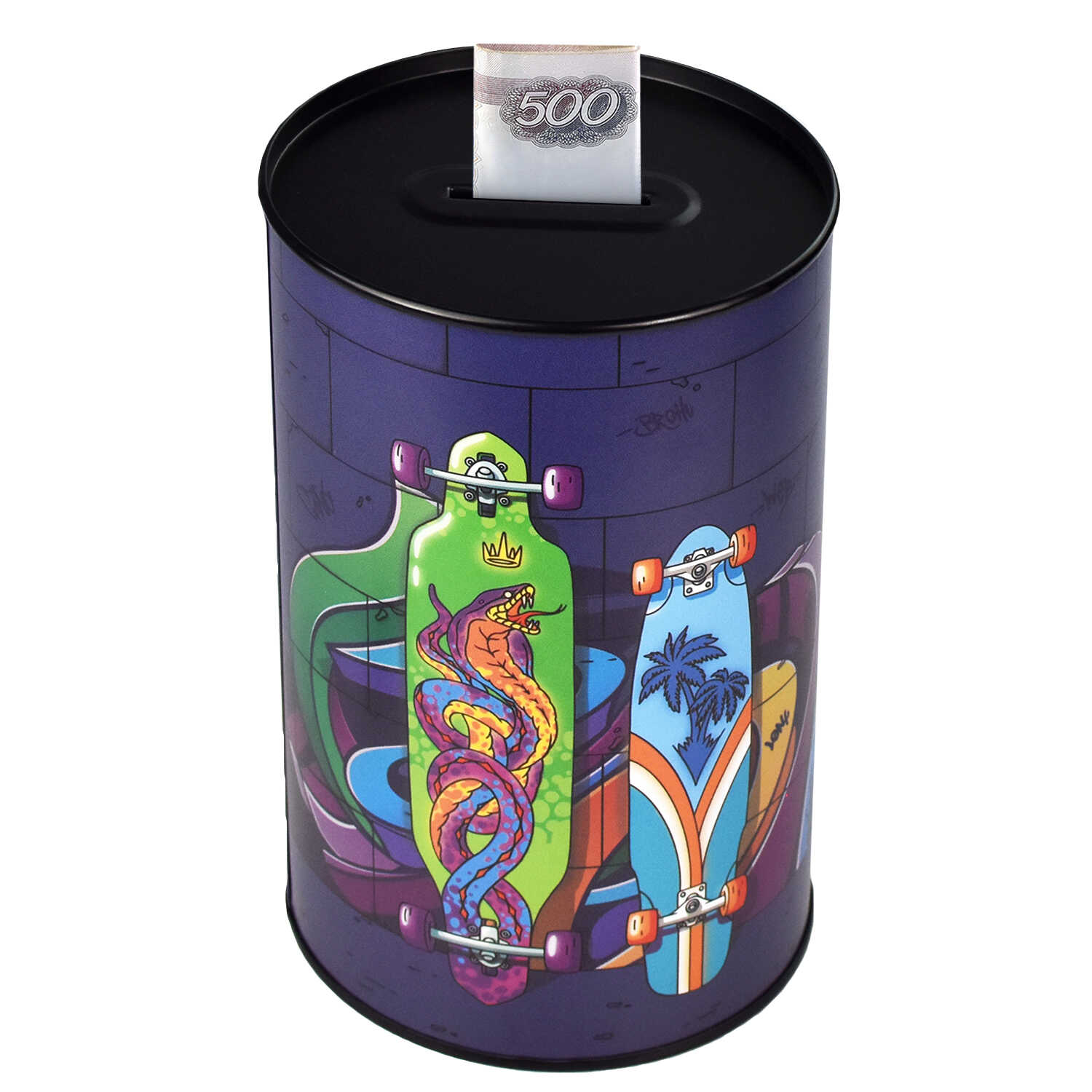 Копилка, СКЕЙТЫ 15,7х10х10 см, металл, полноцветная печать, ПЭТ-пакет).