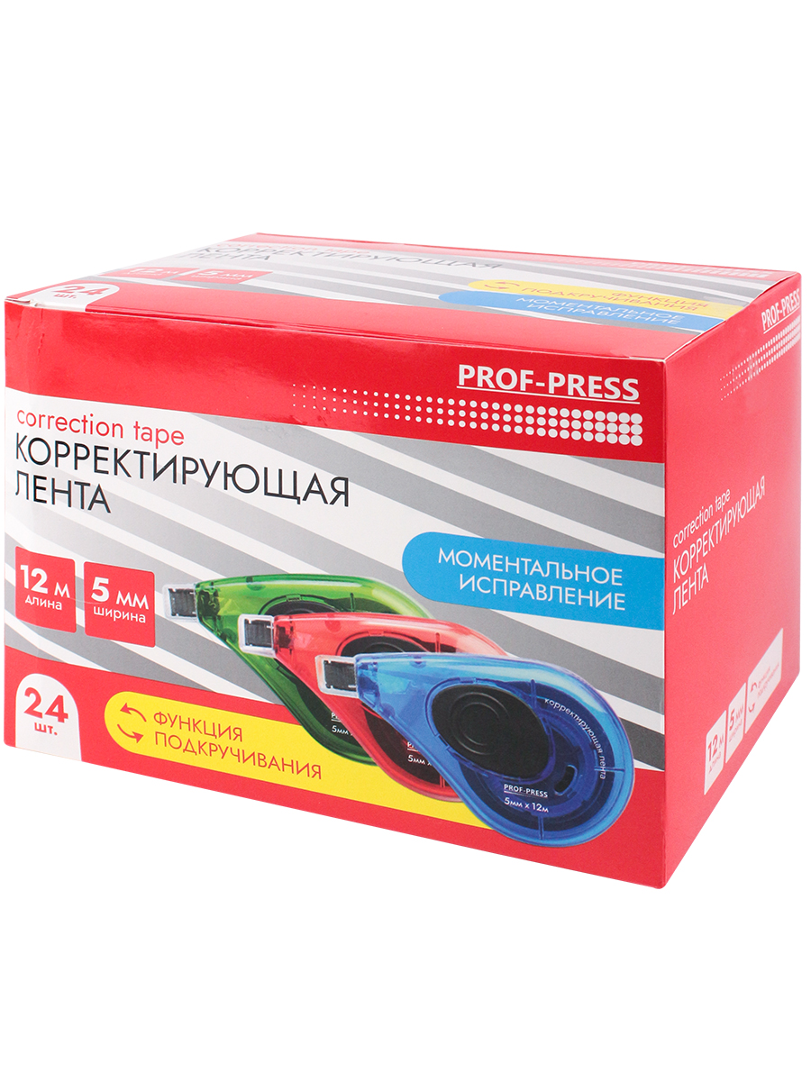 Корректирующая лента пригодится офисным сотрудникам, школьникам и студентам для исправления мелких ошибок в печатных или рукописных текстах. Не нужно ждать высыхания, можно сразу вносить исправления. Средство быстро высыхает на бумаге, ложится тонким слоем. Упаковка: блистер. Ширина ленты: 5 мм, длина: 12 м.