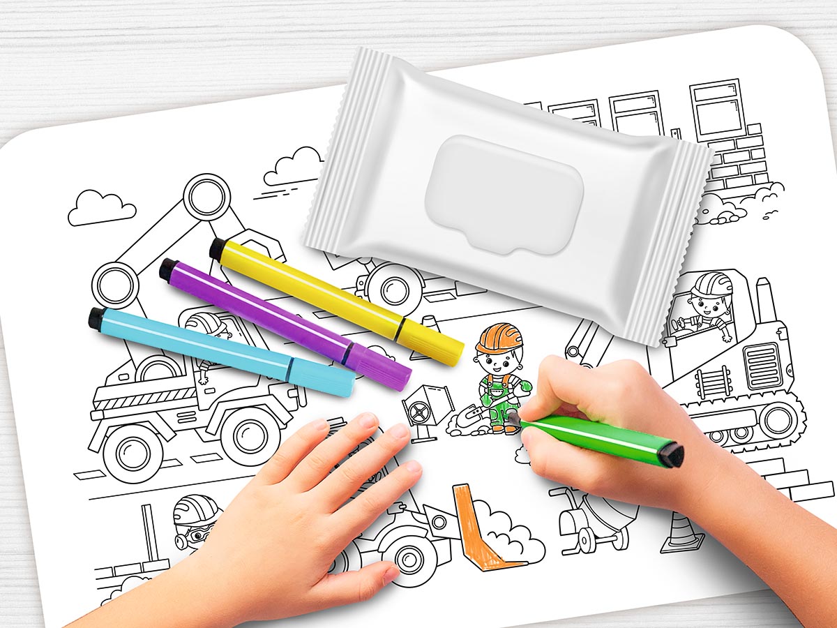 Раскрасить такой коврик можно цветными карандашами или фломастерами, при этом карандаши стираются обычным ластиком, а фломастеры – просто смываются водой или влажной салфеткой.