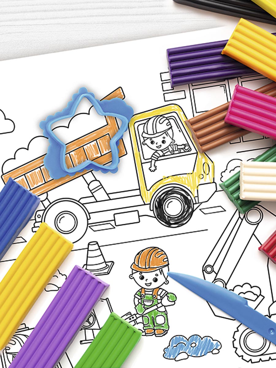 Коврик-раскраска - это многоразовая и многофункциональная раскраска, созданная специально для мальчиков, с изображением стройки и строительной техники.