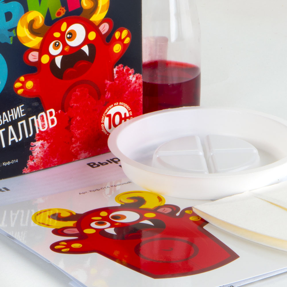 Набор поможет провести простой эксперимент. За ростом кристаллов очень интересно наблюдать, а в результате получится неповторимый сувенир или необычный подарок. Вырастите из кристаллов монстрика, которые вырастут всего за несколько часов. В наборе уже есть все необходимое для создания оригинальной поделки. Дети справятся со всем сами, а потом смогут понаблюдать за тем, как фигурка обрастает волшебными кристаллами. Все компоненты не содержат токсических веществ. Законченную работу для предохранения от выцветания и предотвращения нежелательных последствий при контакте с кожей рекомендуется покрыть лаком.
