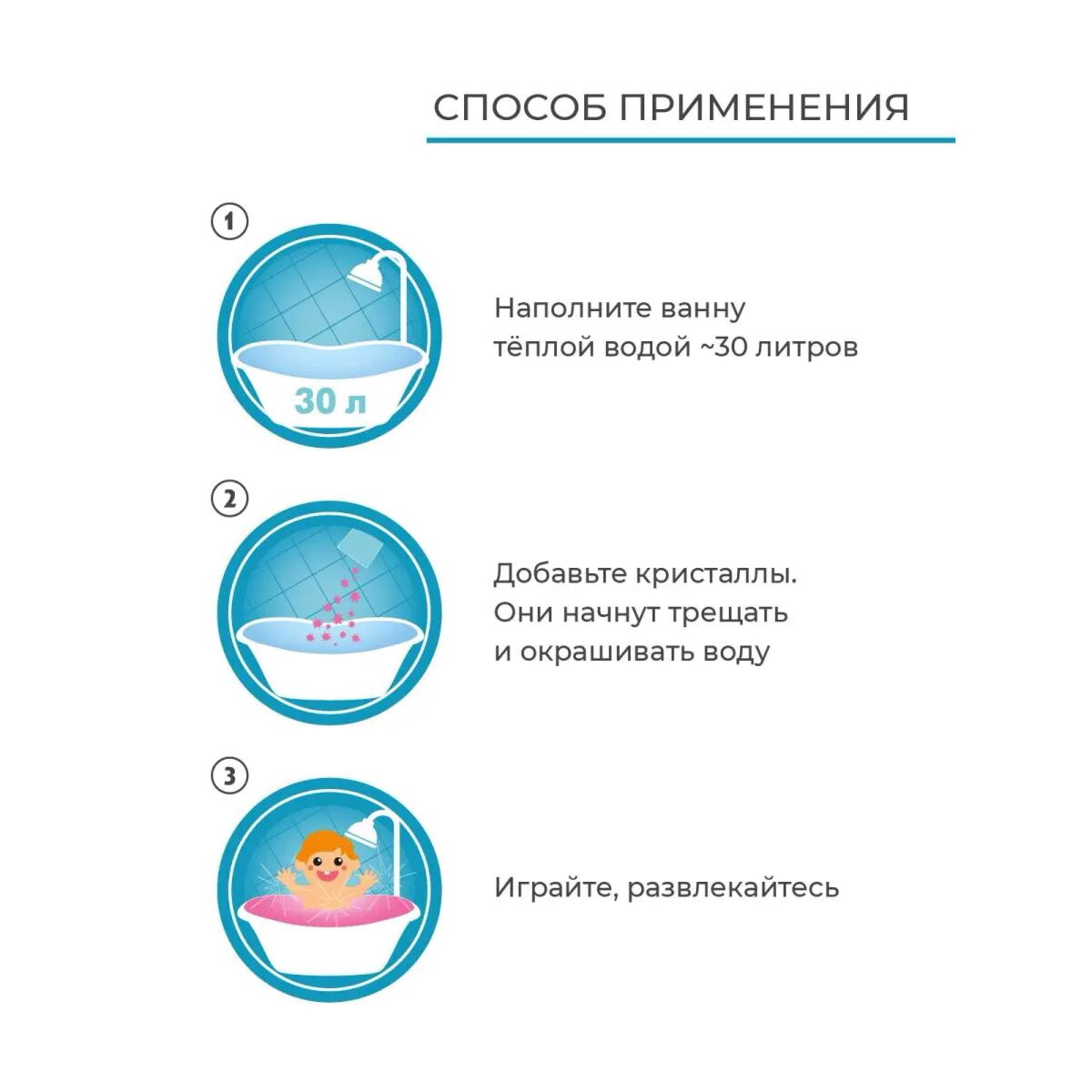 Не окрашивают кожу и ванну. Гипоаллергенно. Безопасно для кожи ребенка. Возможна индивидуальная непереносимость компонентов, входящих в состав.