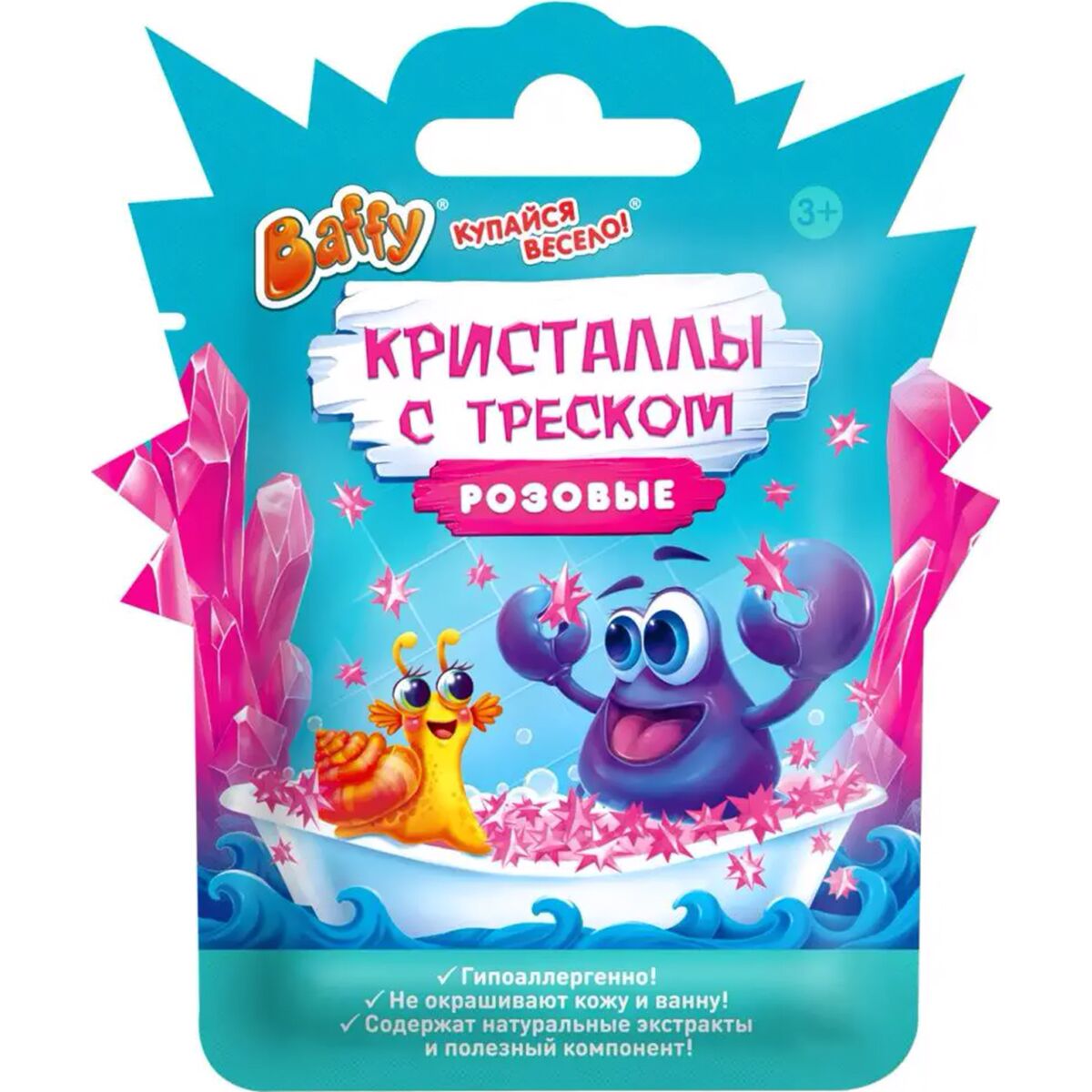 Кристаллы с треском Baffy будут потрескивать и окрасят воду, как только соприкоснуться с ней.