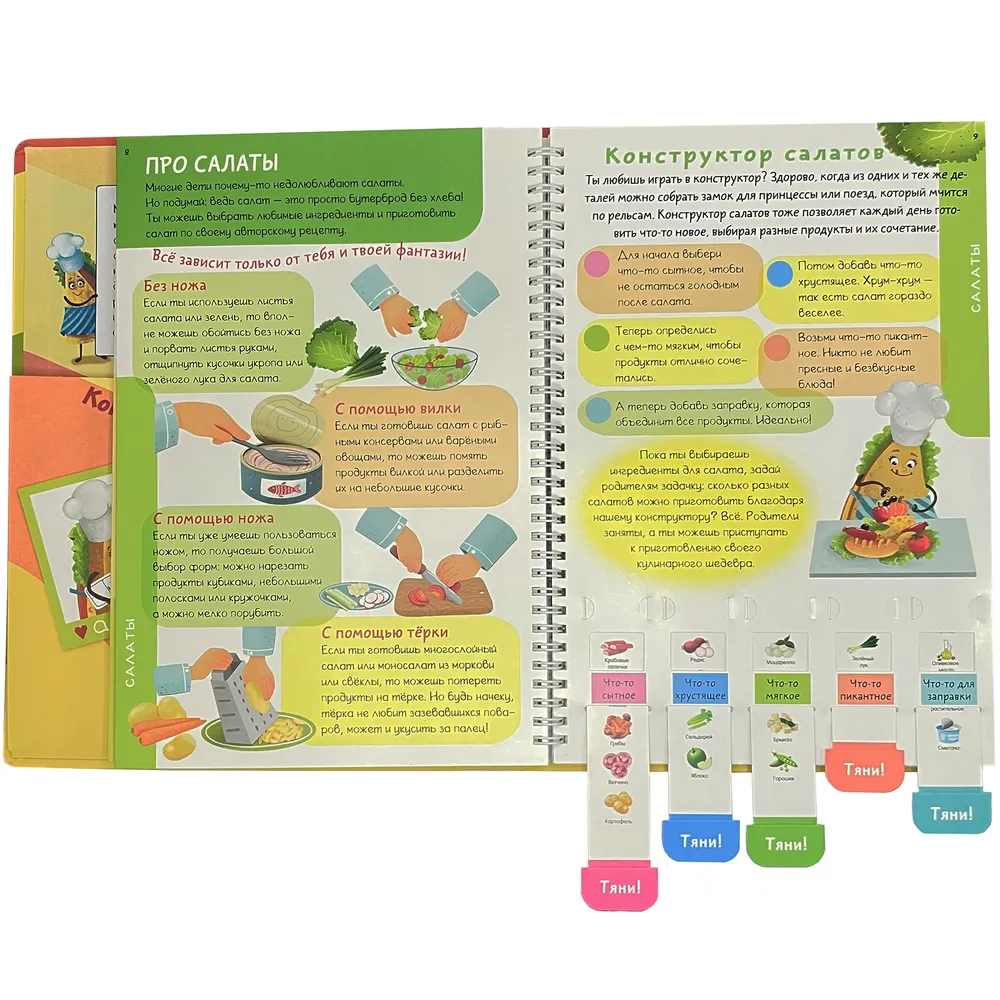 32768 полезных салатов, 3125 сытных бутербродов, 512 необычных тортов, 64 великолепные пиццы и еще много вкусных, быстрых и полезных блюд в интерактивной кулинарии. Да-да! Все в одной книге! Не веришь? Срочно загляни внутрь! Вместо сотен скучных страниц с рецептами мы придумали несколько кулинарных конструкторов. Двигай! Крути! Тяни! И каждый день пробуй новое блюдо из тех продуктов, что всегда есть под рукой.